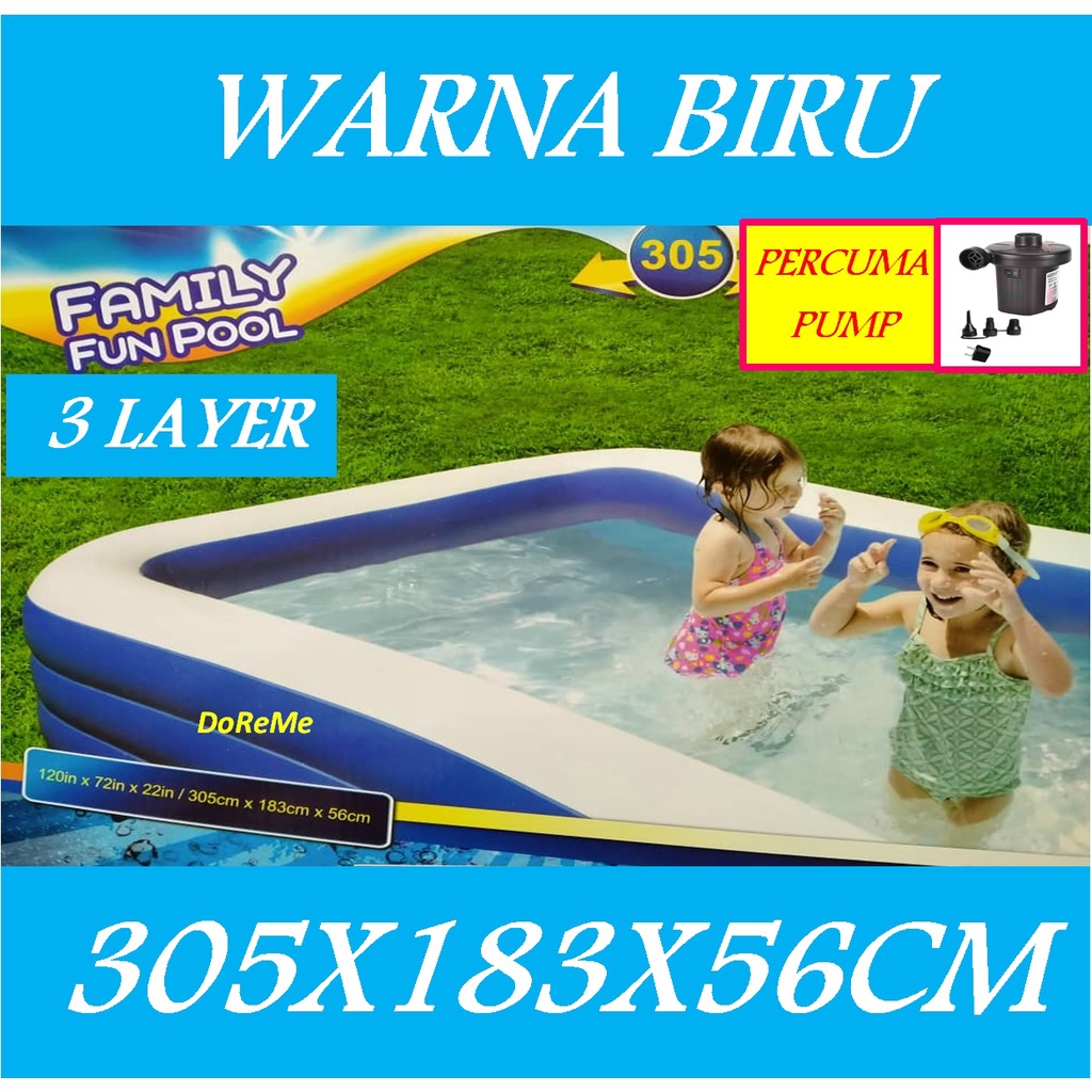 KOLAM MANDI MURAH BESAR KANAK-KANAK & DEWASA, PUMP PERCUMA, INFLATABLE POOL FOR CHILD ADULT 1.2M, 1.5M, 1.8M, 2.6M,3.05M