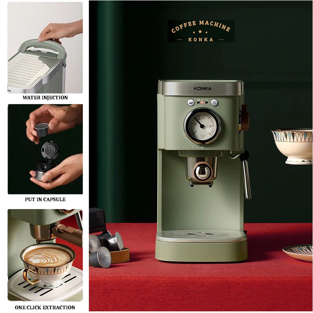 KONKA 3 in 1 Espresso Coffee Machine Espresso Italian Semi-automatic Capsule Coffee Maker Filter Cartridge Pump Steam