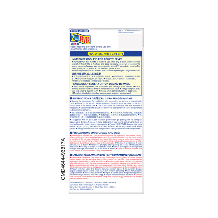 KOOLFEVER Kool Fever Cool Adult 6+2 Sheets