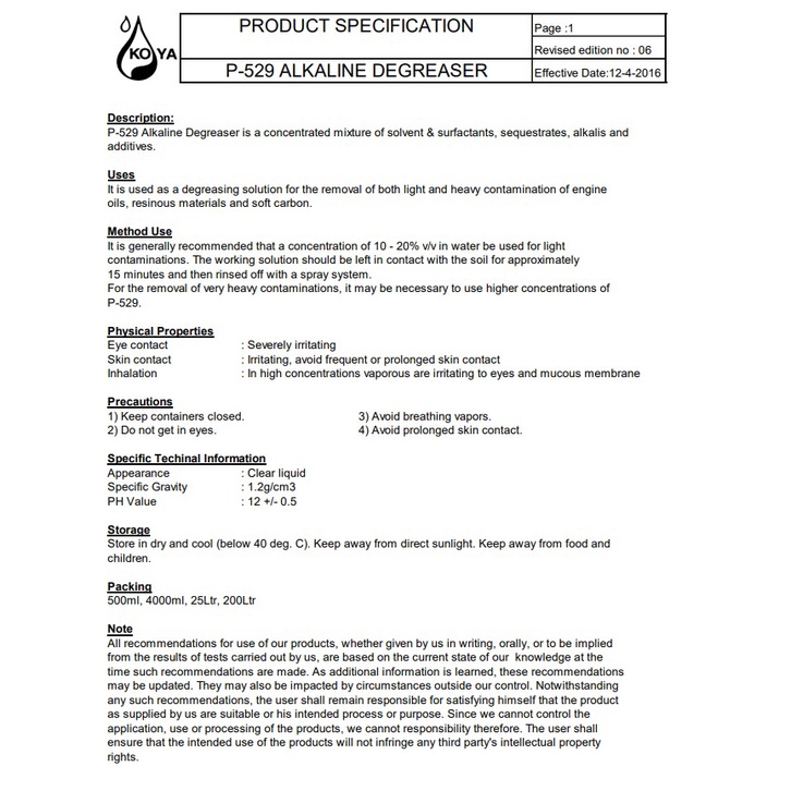 KOYA P-529 Alkaline Degreaser Engine Degreaser 4000ml