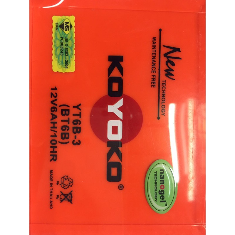 KOYOKO BATTERY G2 NANOGEL GEL YT6B HONDA RS150 TRX250 CBR125 (2004/2007)PCX150 NEWARI BLADEVARIO150CLICK150I BMW G450X
