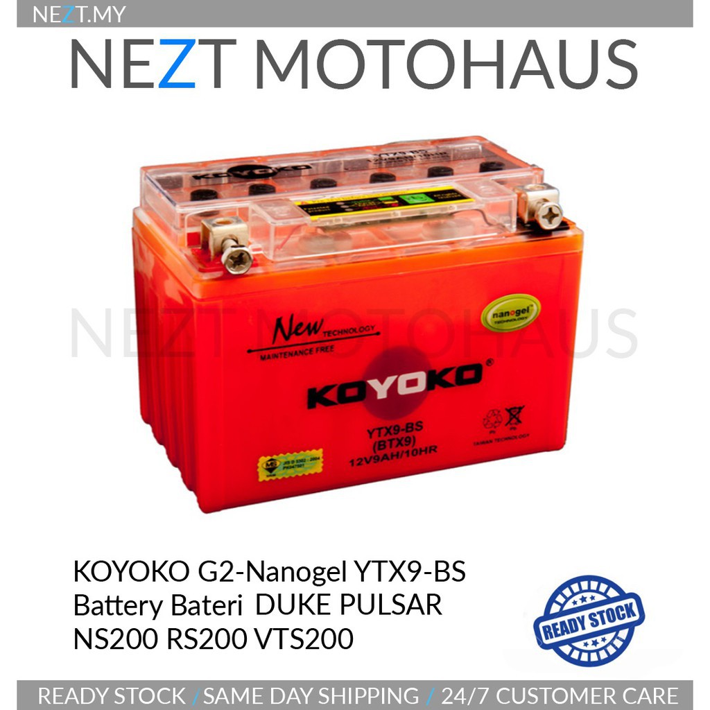 KOYOKO G2-Nanogel YTX9-BS Battery Bateri NINJA 250 Z250 Z800 ZX6 Z8 Z9 DUKE PULSAR NS200 RS200 VTS200