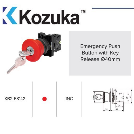 KOZUKA KB2 SERIES ES142 40mm EMERGENCY PUSH BUTTON KEY RELEASE