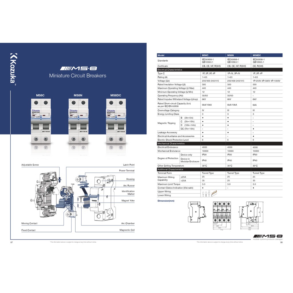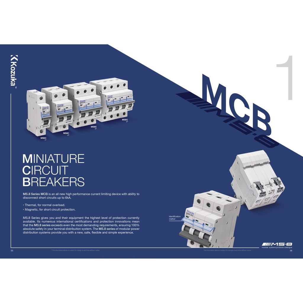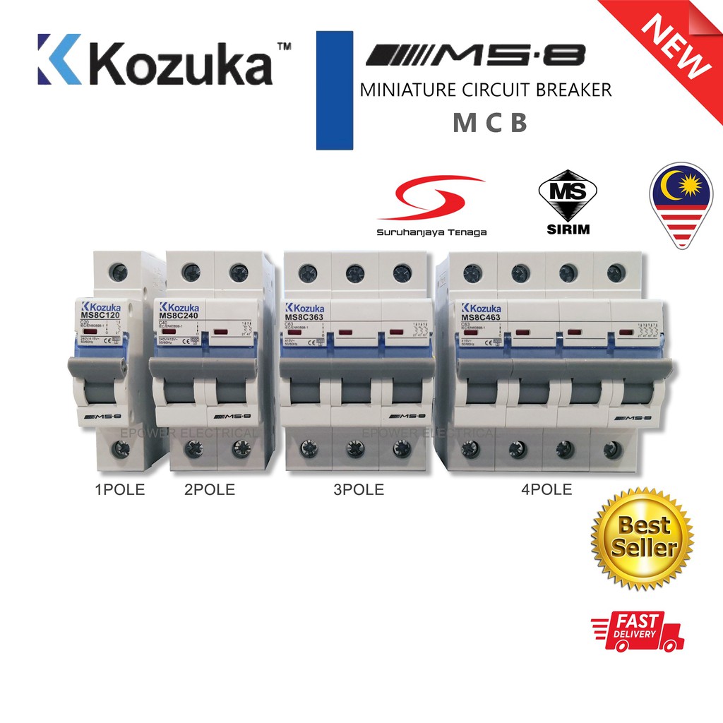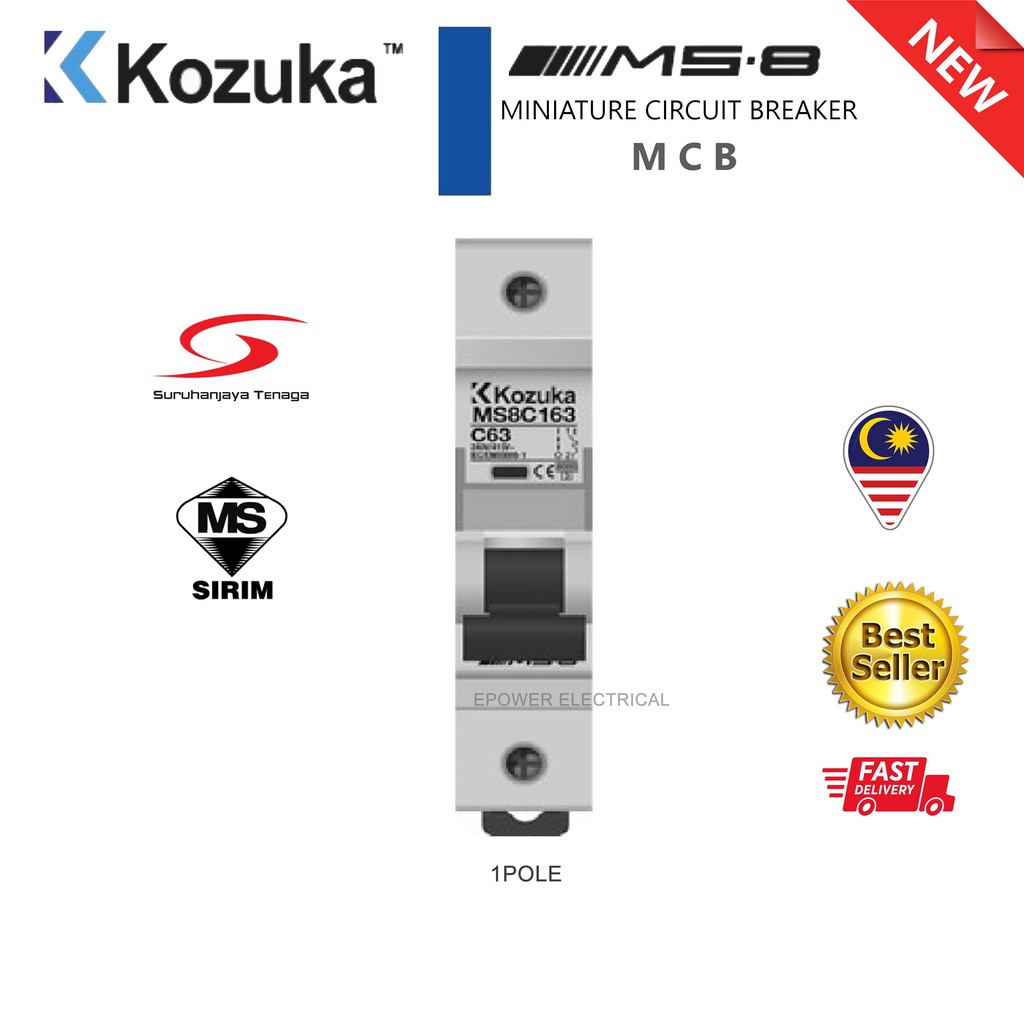 KOZUKA MS8 1P MCB 1A, 2A, 3A, 4A, 6A, 10A, 16A, 20A, 25A, 32A, 40A, 50A, 63A 6KA SIRIM