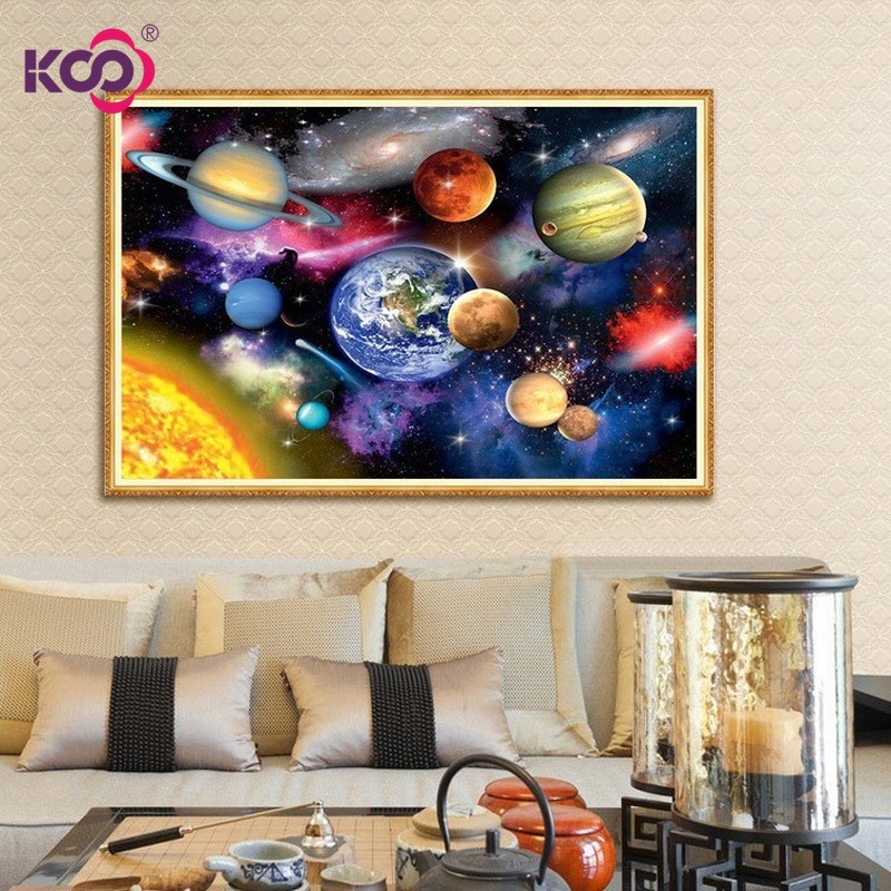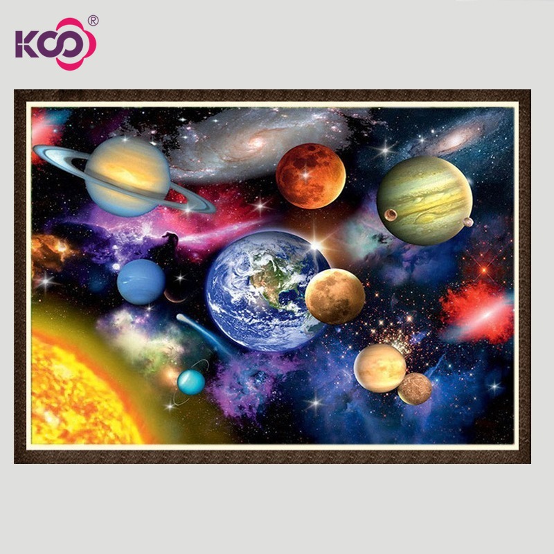 KS 5D DIY Round Hourglass Diamond Painting Universe Nine Planets Outside The Solar System Study Room Decor 30x40cm