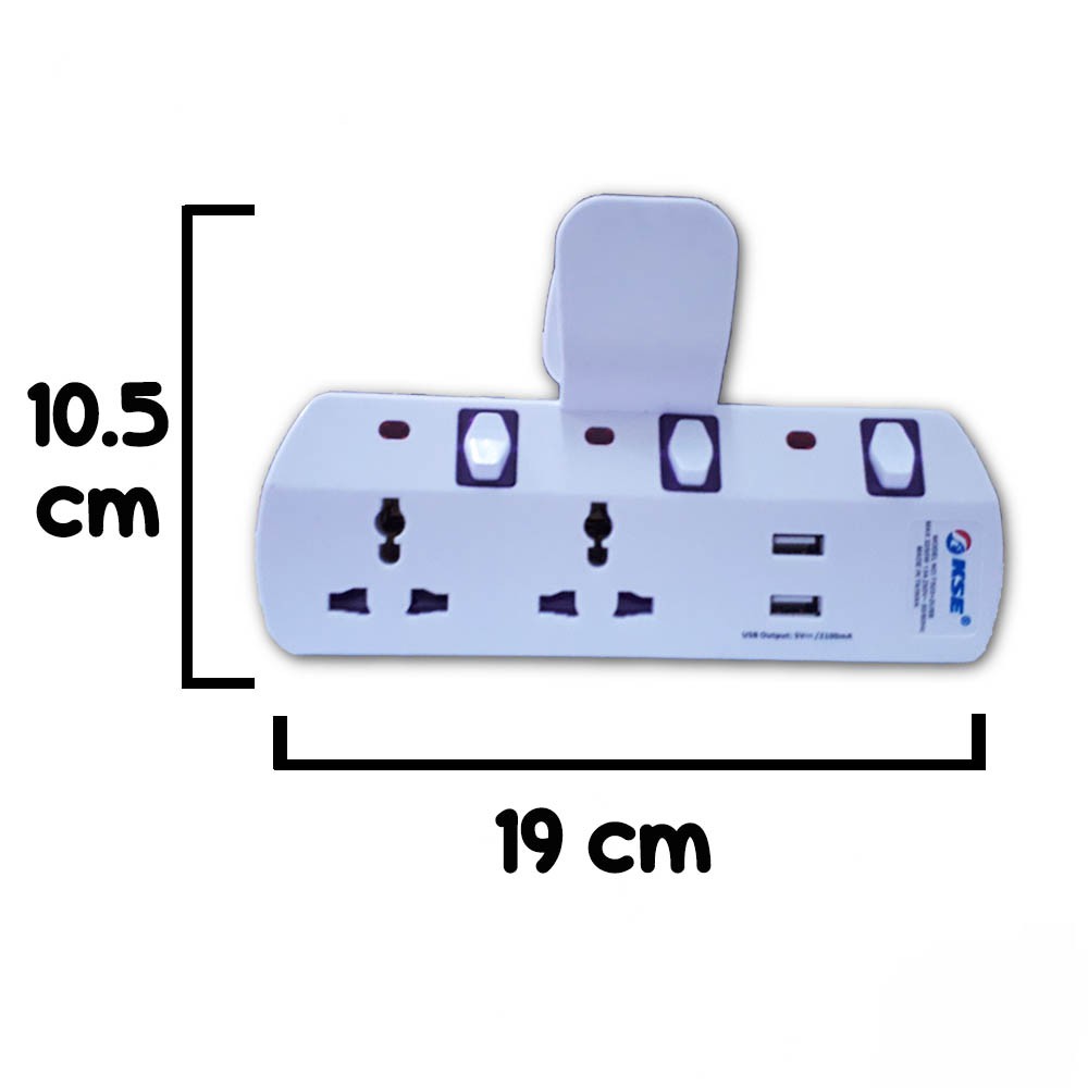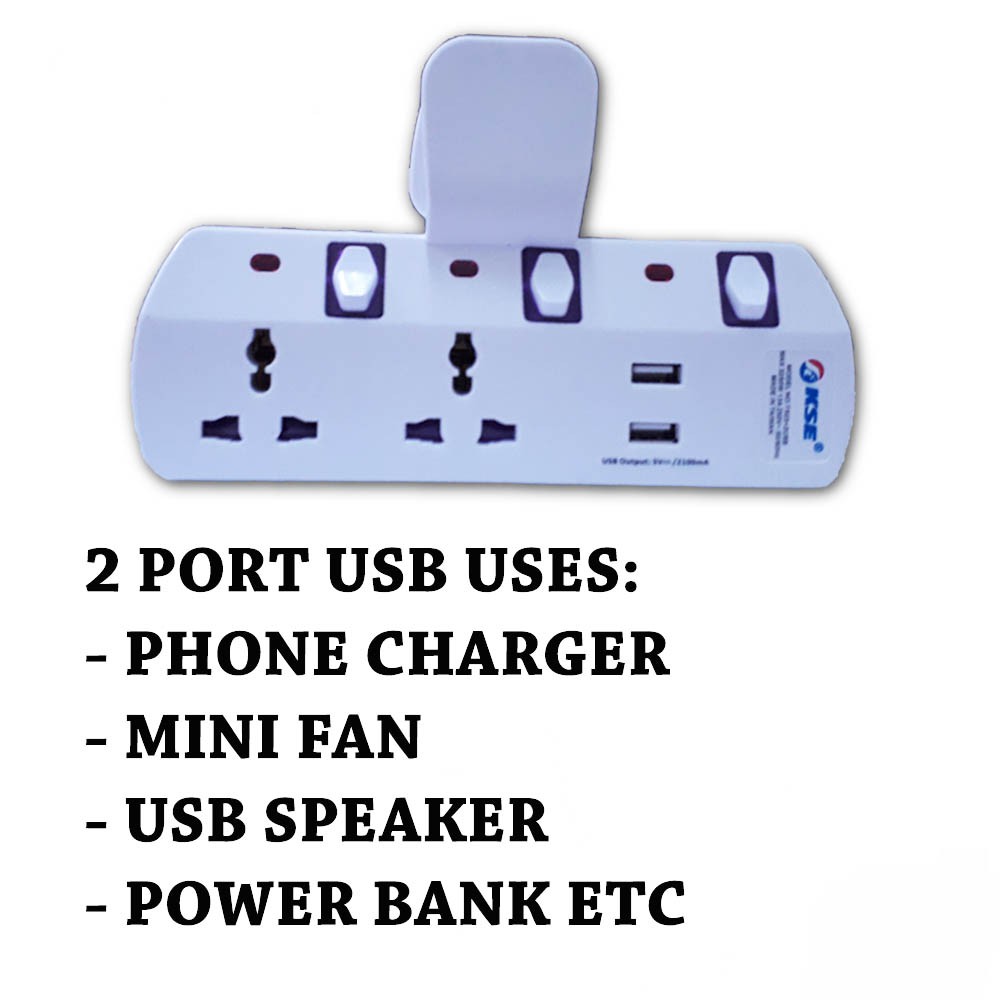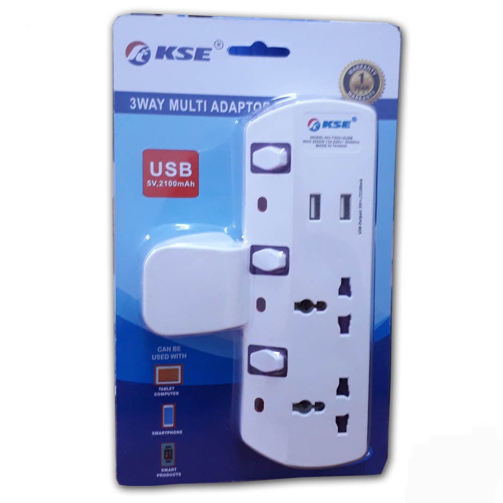 KSE 3 Pin UK Plug with 3 Ways Multi Universal 2 USB Port Adapter Socket Extension - Original(1 Year Warranty)/Indicator