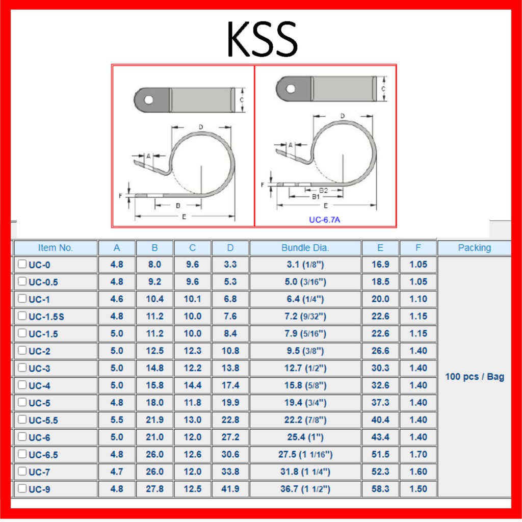 KSS|CABLE CLAMP|UC-6.5|UC-6|UC-5|UC-4|UC-3|UC-2|UC-1.5|UC-1|UC-0.5