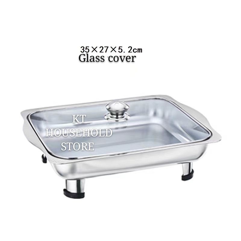 KT WARE 6 set 35x27cm Buffet set (glass cover) chafing dish food tray kenduri tray catering tray food pan berkas lauk