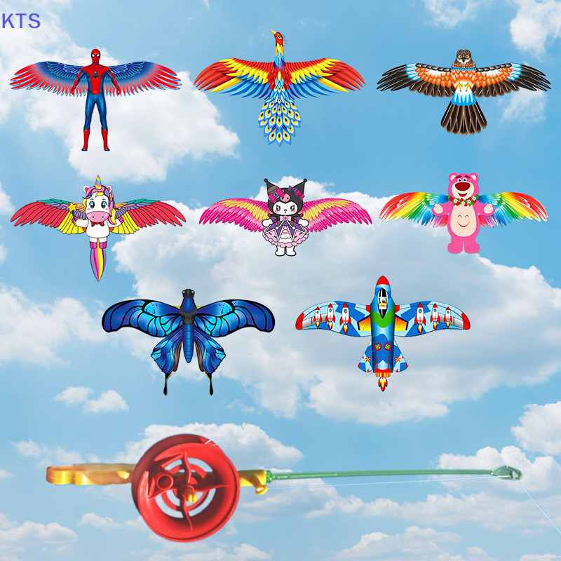 KTS Child Dynamic Kite Cartoon Phoenix Airplane Eagle Kite Kids Handheld Fishing Rod Kite Outdoor Sport Toys ror