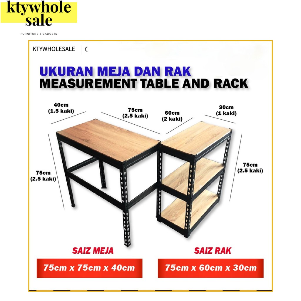 KTY 2 in 1steel rack 3 tier/rack meja/computer desk/office table/study table kids/meja study/rak besi/meja komputer