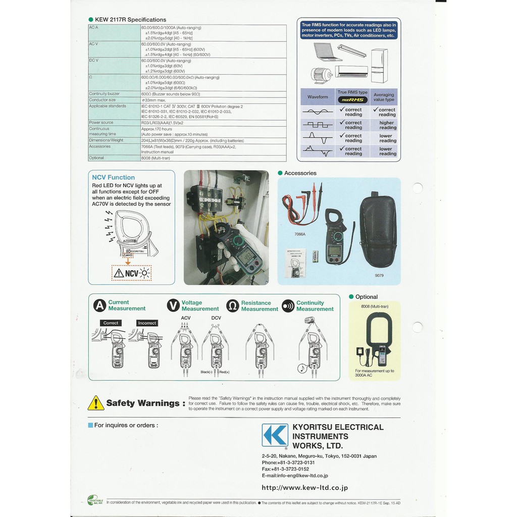KYORITSU 2117R TRUE RMS Digital Clamp Meter (KEW2117R)