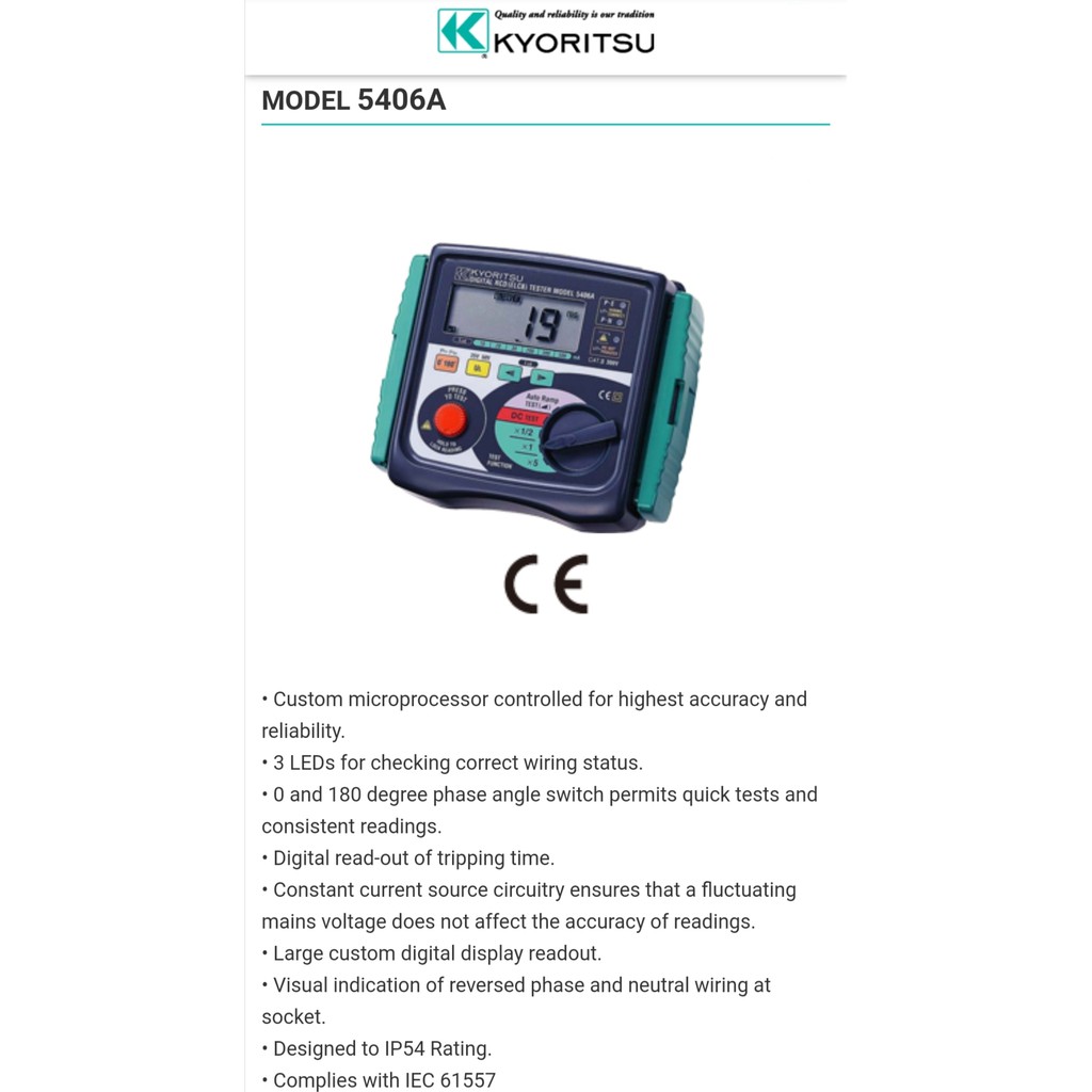 KYORITSU 5406A Digital RCD (ELCB) Tester