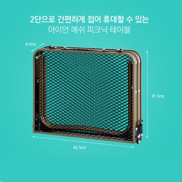 KZM Iron Mesh Picnic Table - Small Sized Portable & Foldable Camping Table