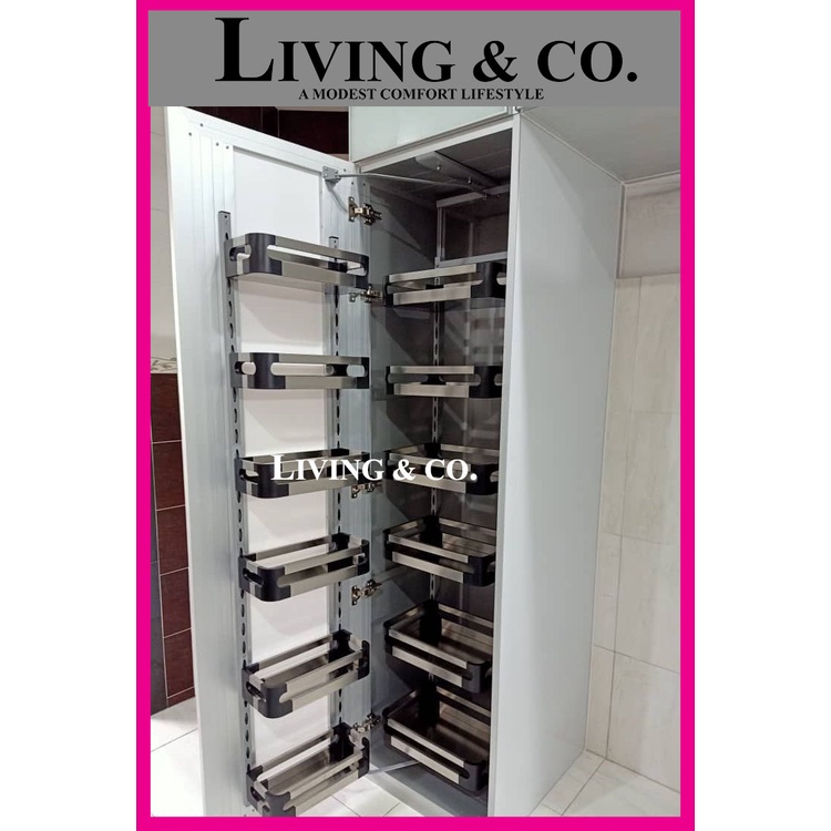 Kabinet Almari Tarik Rail Tangga tinggi Rak Dapur/6-Tier Kitchen tall ladder Rail Track Pull Out Basket Stainless steel