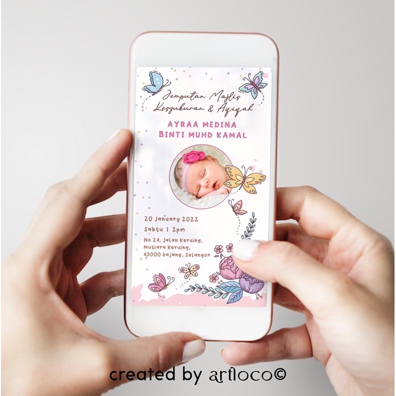 Kad Jemputan Majlis Aqiqah Bergambar Full HD | Invitation Card Digital butterfly theme