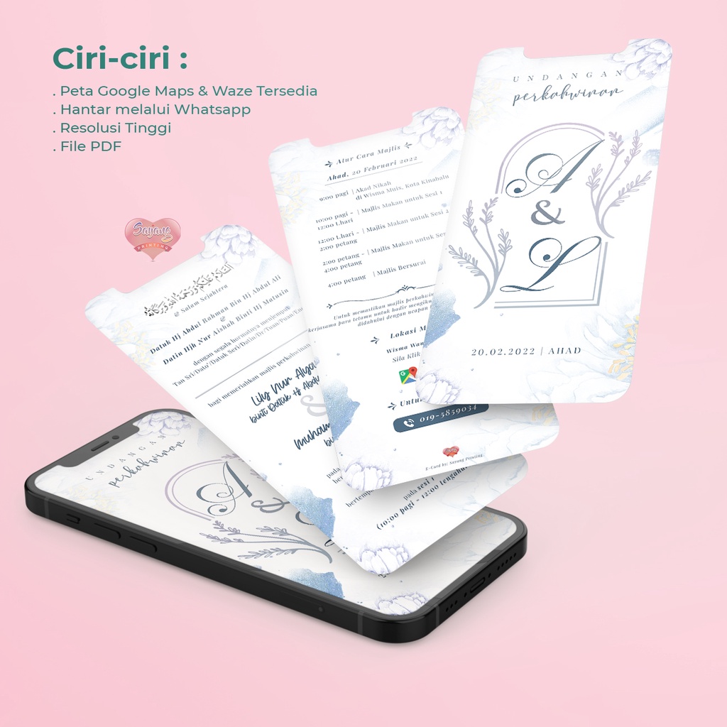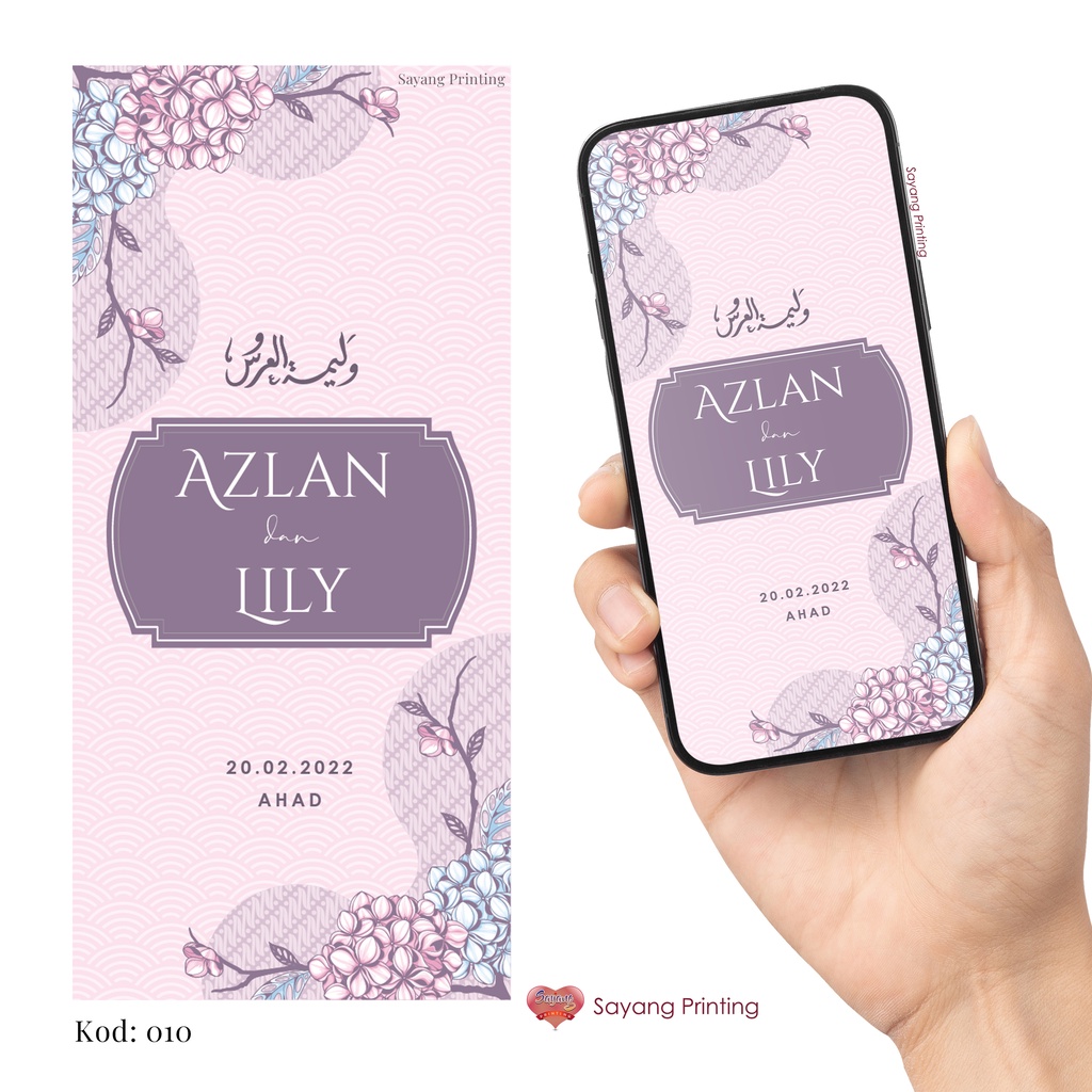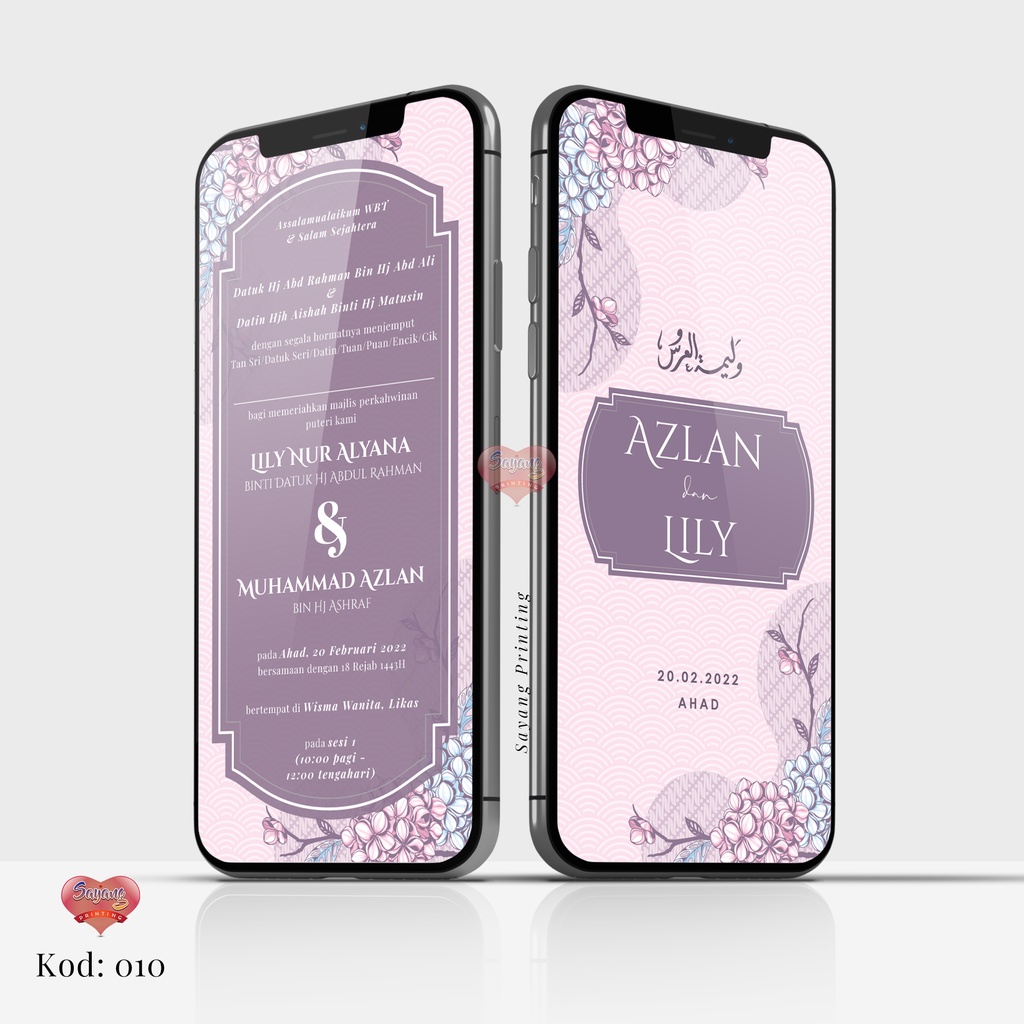 Kad Kahwin Digital Tema Batik Warna Pastel Ungu dan Bunga Batik | Kad Undangan Kahwin untuk Whatsapp dan Sosial Media