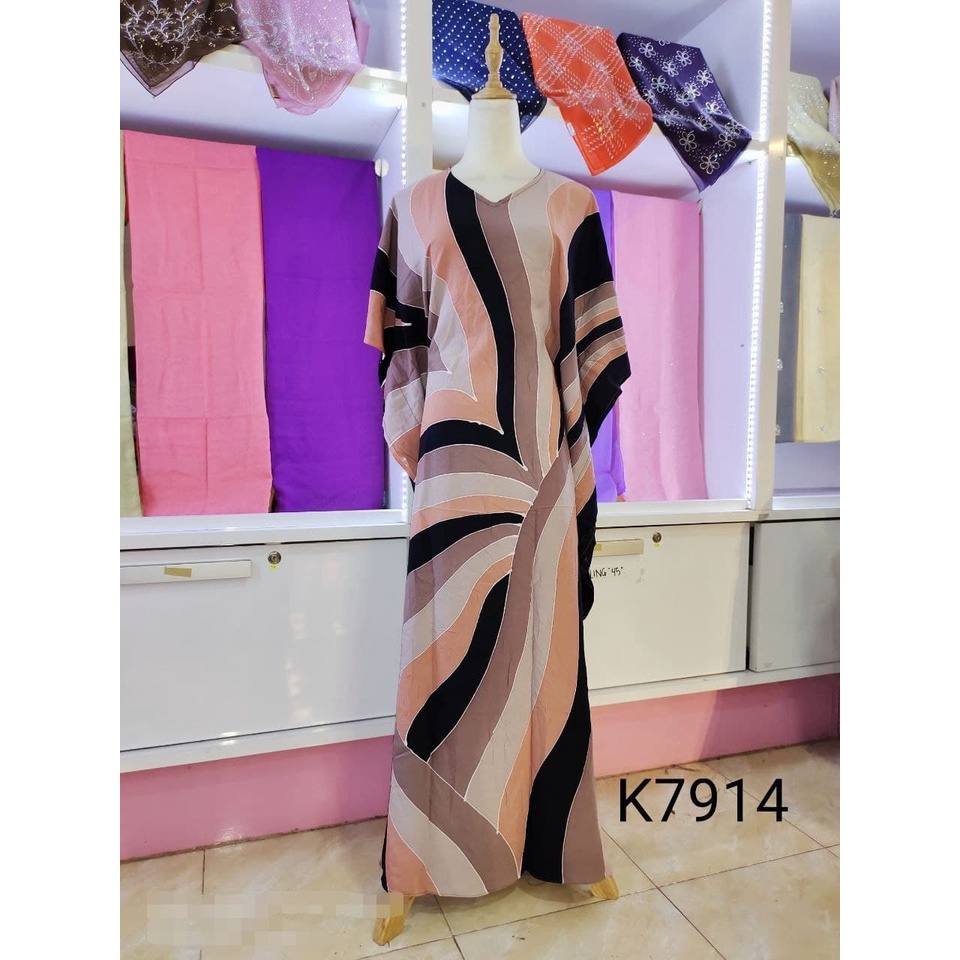 Kaftan Eksklusif Premium Corak Batik Moden Modern Cotton Sejuk Corak Baju Kelawar Selesa Baju Tidur Santai Serap Peluh