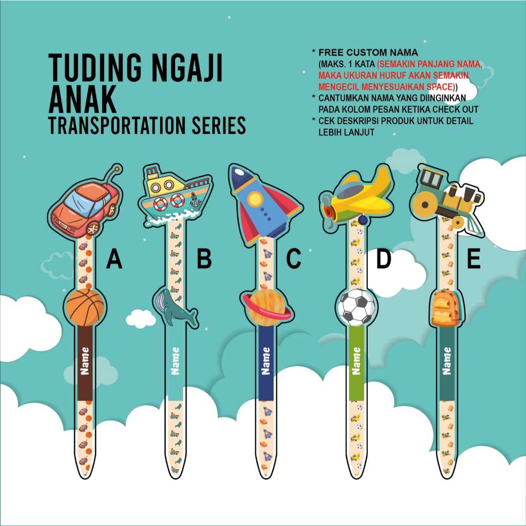 KALAM NGAJI CHILDREN'S QURAN RECIPIENT TRANSPORTATION SERIES Custom ACRYLIC Name Koran Reading/ (CUSTOM NAME ACRYLIC NGAJI GUIDE) TUDING NGAJI/ FOR CHILDREN PAUD TK SD CUSTOM NAME Quran recitation/ worship/ custom gift/ instruction/ Studying the Koran
