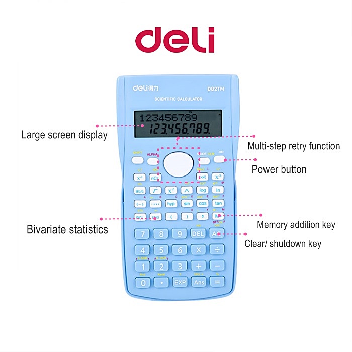 Kalkulator Saintifik Deli Scientific Calculator Problem-Solving With Slide Cover 240 Functions 10+2 Digits ED82MS