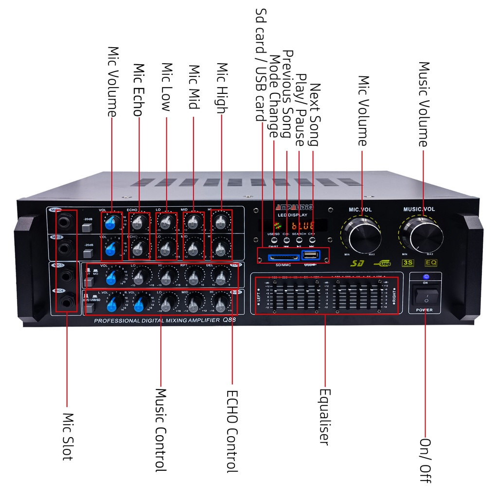 Karaoke Amplifier Ampaudio AV88F Bluetooth Stereo Amplifier Wireless Audio Home Karaoke Power Amplifier USB
