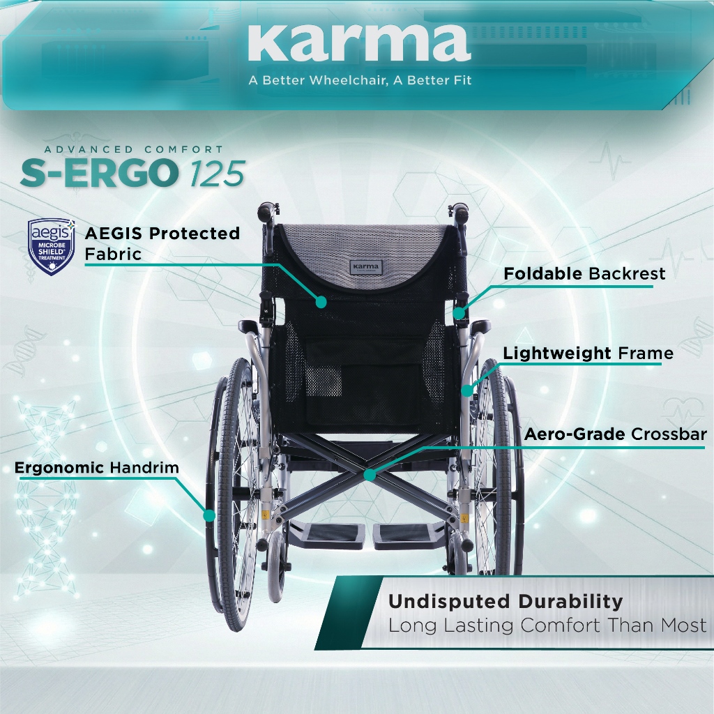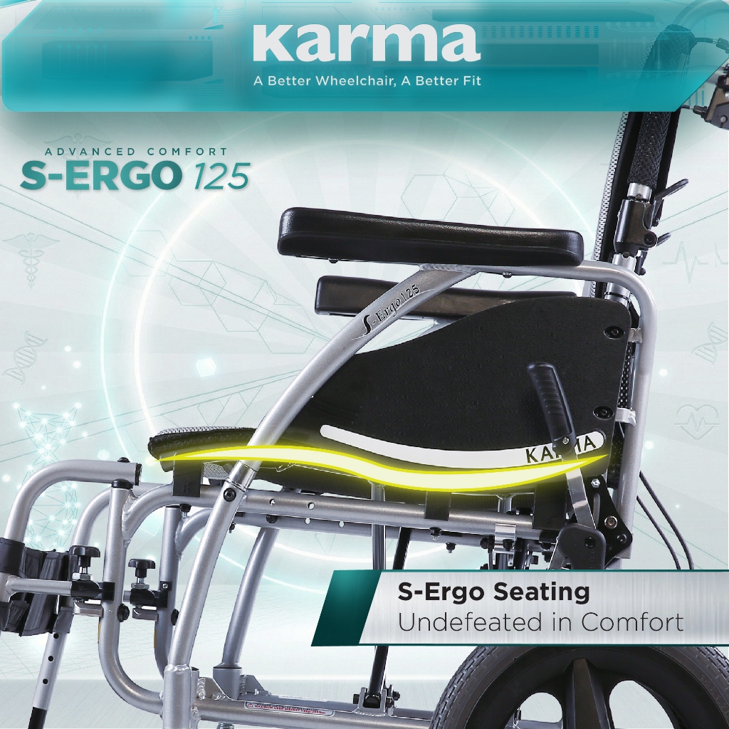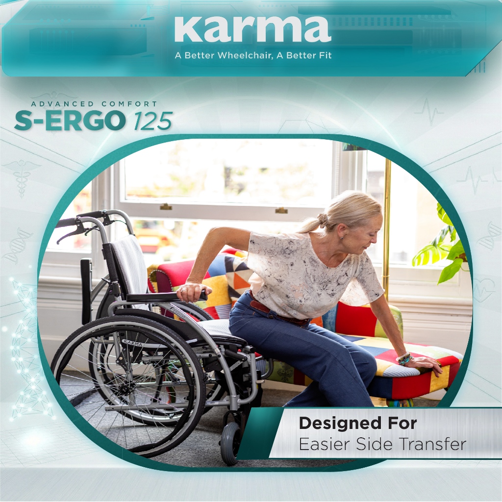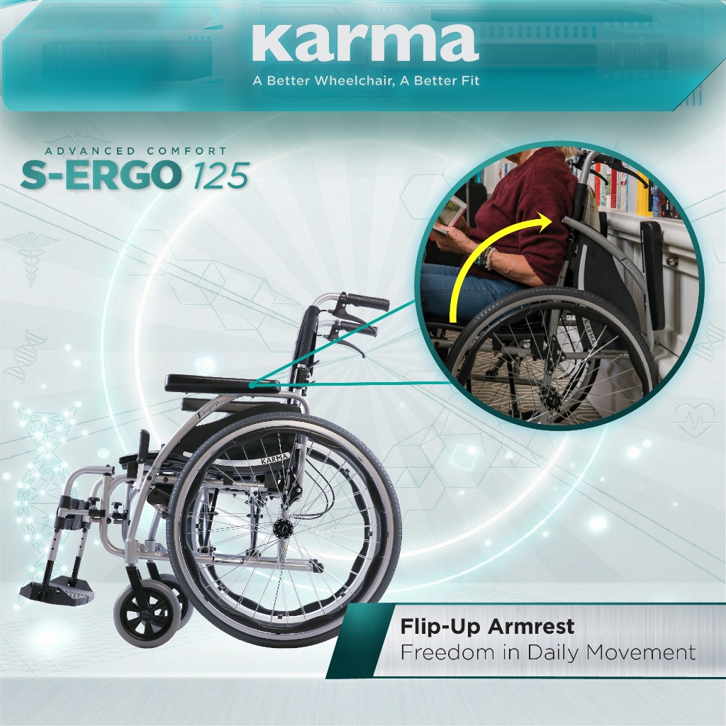 Karma S-Ergo125 Q24 Aluminum Lightweight Wheelchair With Flip Up Armrest and Detachable Footrest