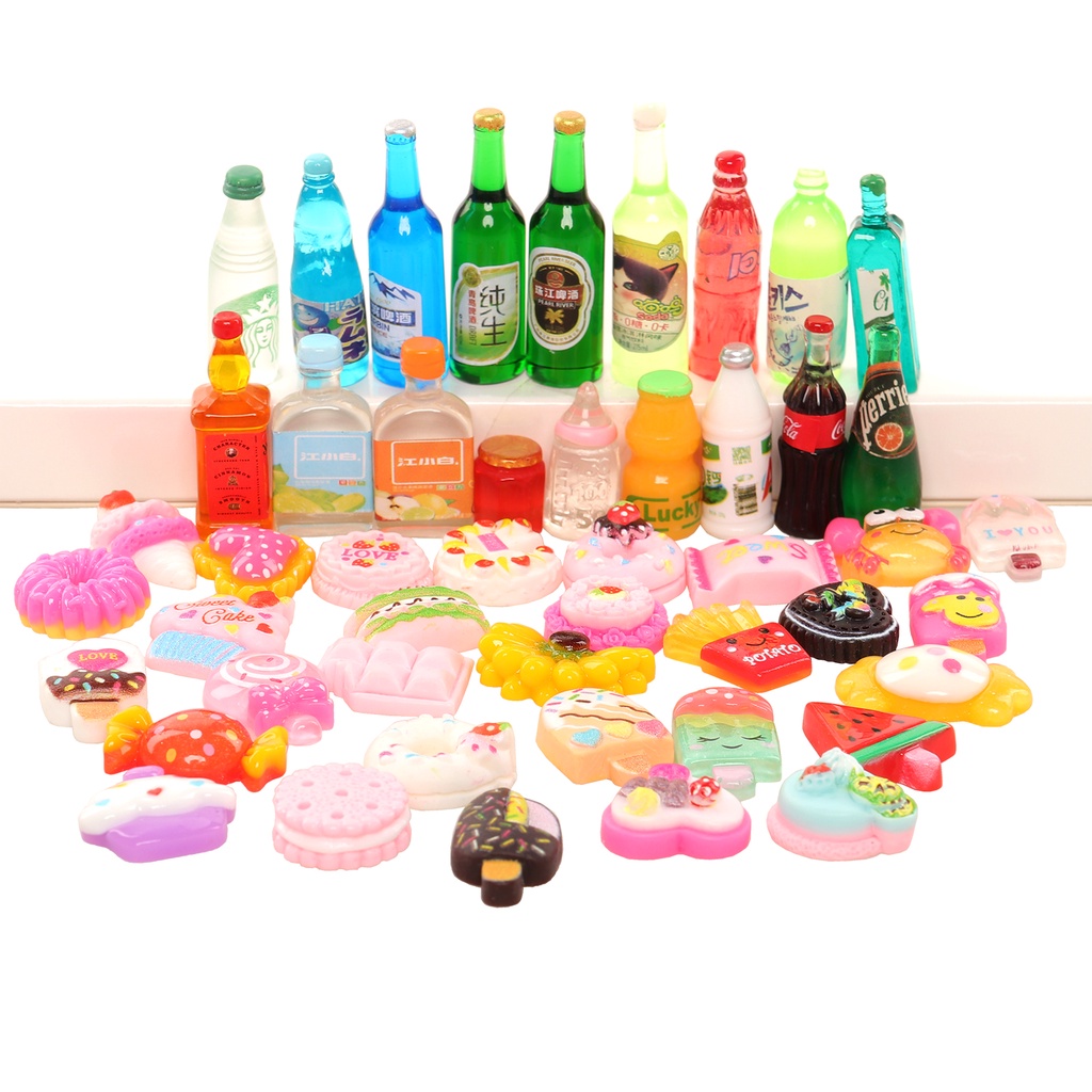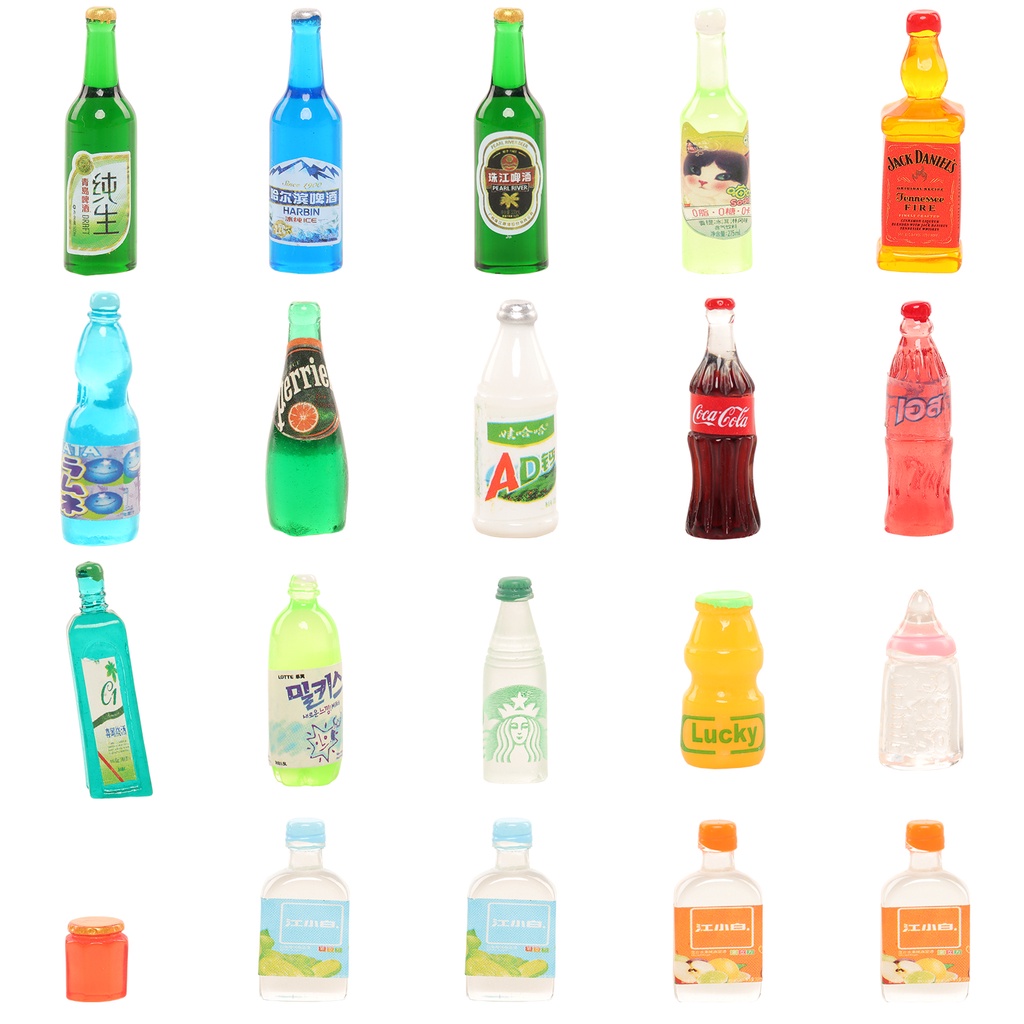 Kawaii Cute DollHouse Accessories Funiture 20 Pieces Miniature Doll Food Mini Botttle Drink Candy for Barbie Children Kids Toys