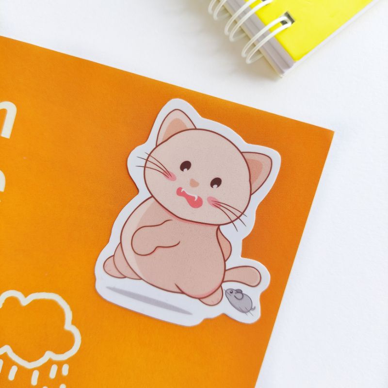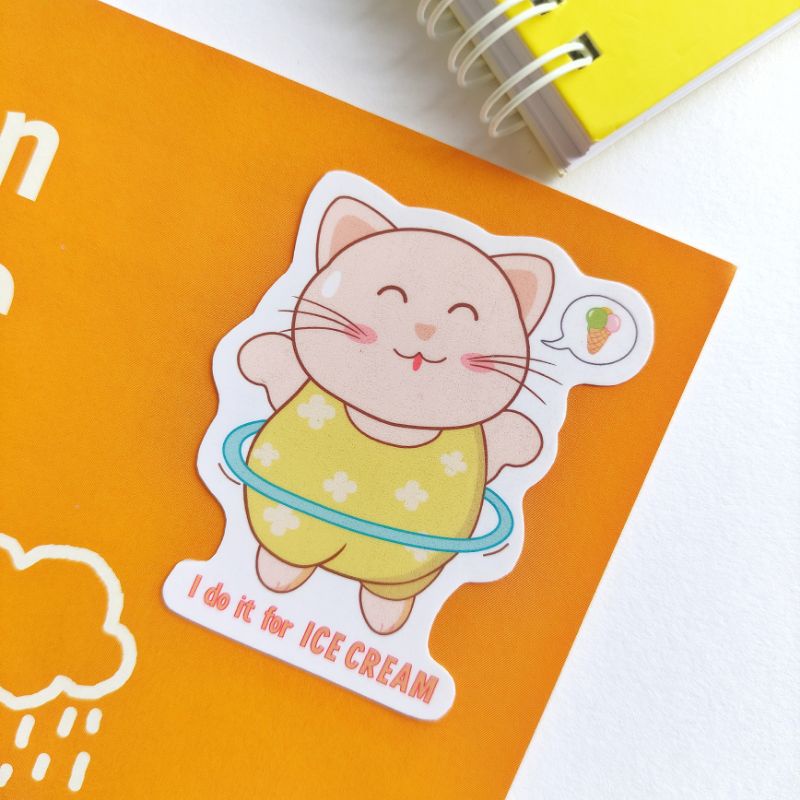 Kawaii Cute Fat Cat Meow Kucing Motivation Positive Aesthetic Kitty Sticker For Handphone Laptop Diary Bujo Stationery