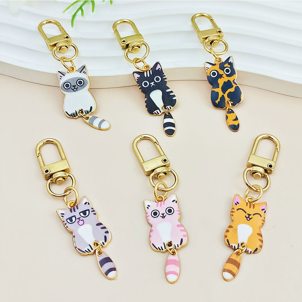 Kawaii Wagging Tail Cat Key Rings Creative Enamel Kitten Metal Keychains Earphone Case Pendant Bag Ornaments Gifts Souvenir