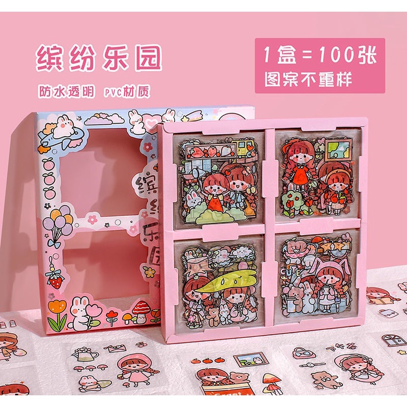 KawaiiGift 100pcs Waterproof Sticker Gift Box Happy Day Cute Stickers Box Planner Diary Journal Stationery
