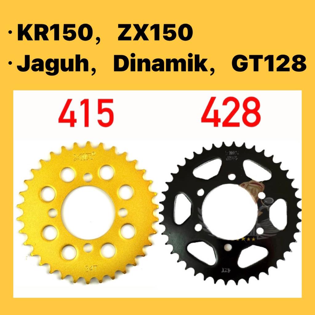 Kawasaki KR150 / ZX150 / Modenas DINAMIK / GT128 / JAGUH Rear Racing Sprocket Spoket Belakang 415 428 spocket gt rr150