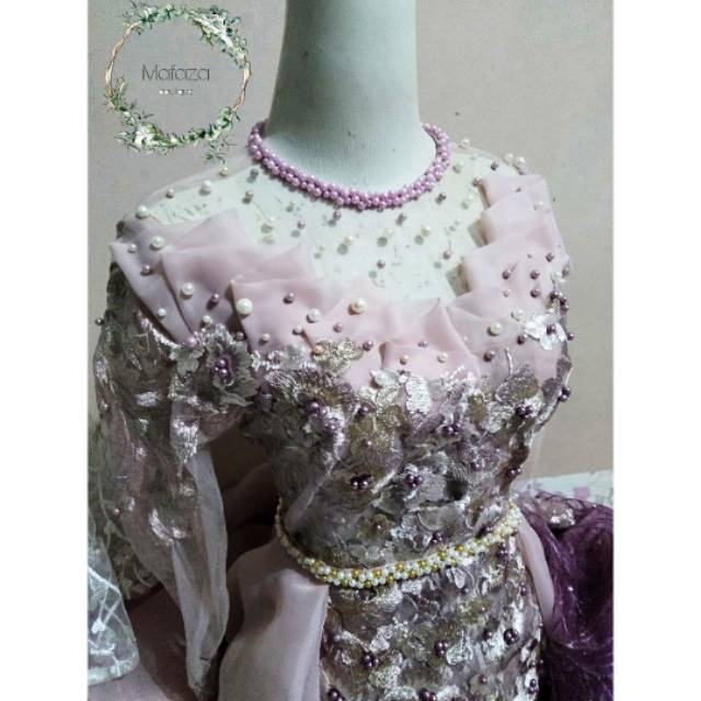 Kebaya Bridal Dress Organza Rose Gold Tail Chest Fan