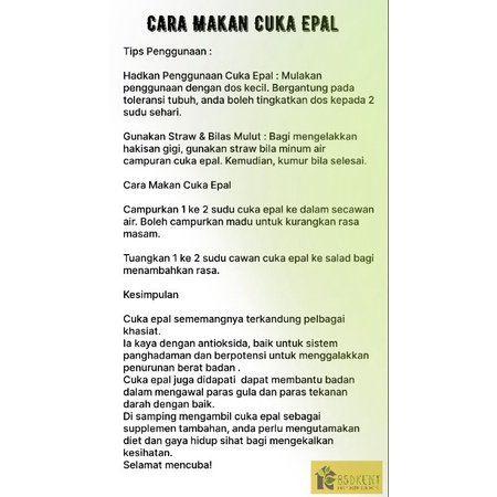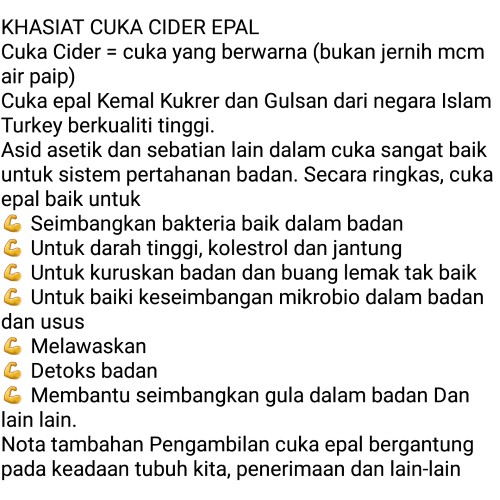 Kemal Kukrer Cuka Cider Epal dari Turki (500ml) Berkualiti / Apple Cider Vinegar