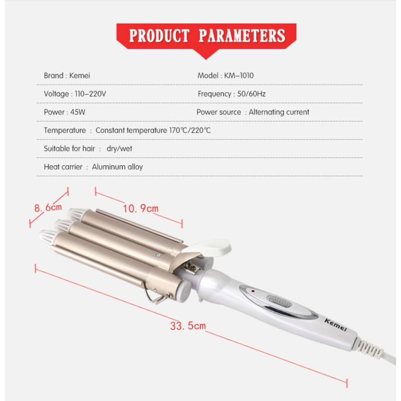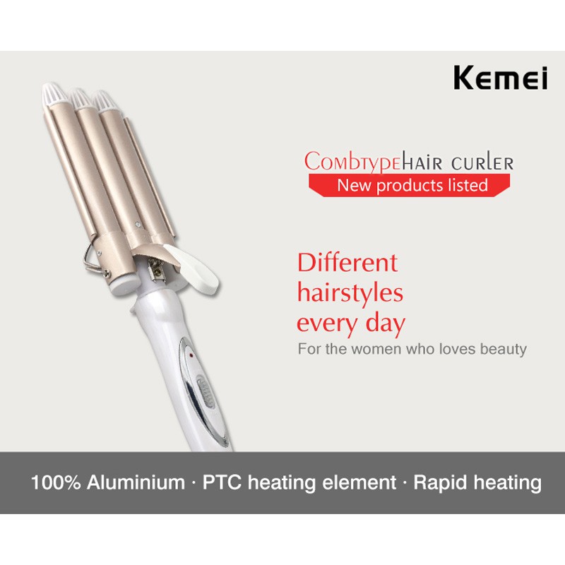 Kemei Curling Iron Ceramic Triple Barrel Hair Styler Hair Waver Styling Tools (110-220V)