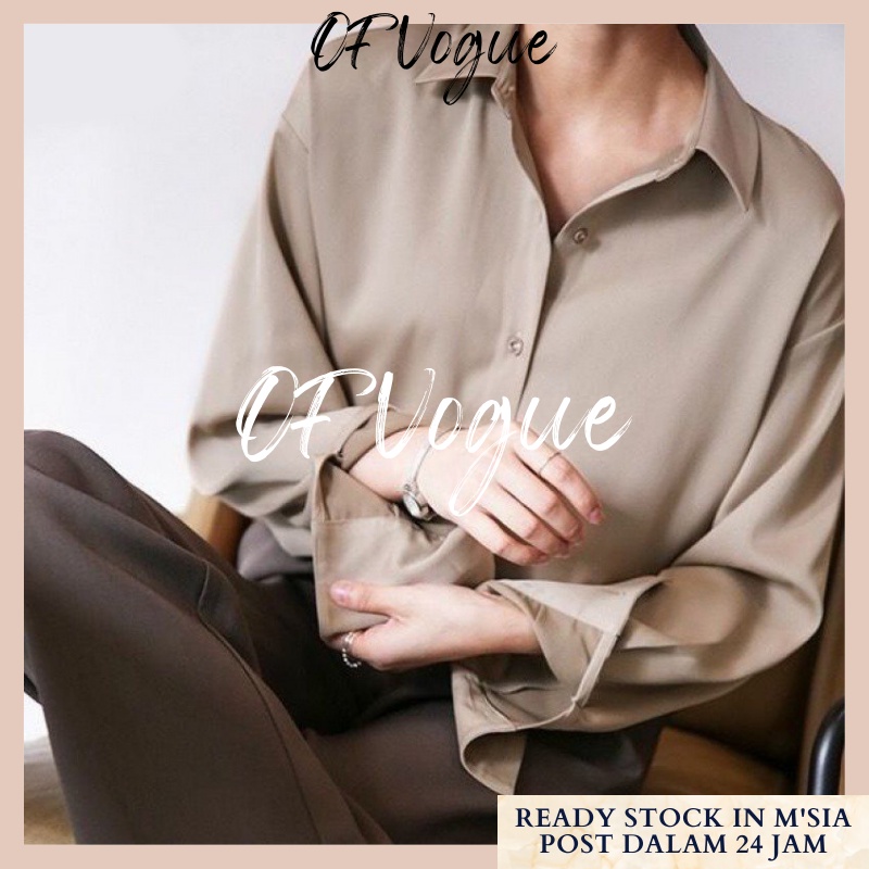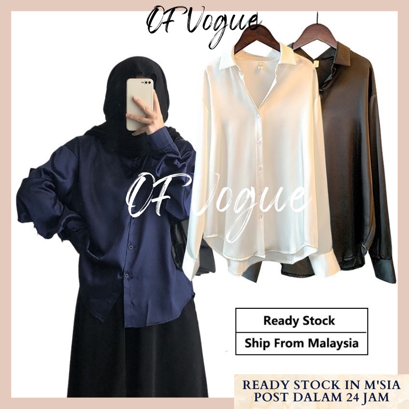 Kemeja Wanita Women Satin Blouse Long Sleeve Loose Blouse Kemeja Perempuan Baju Wanita Lengan Panjang Kemeja