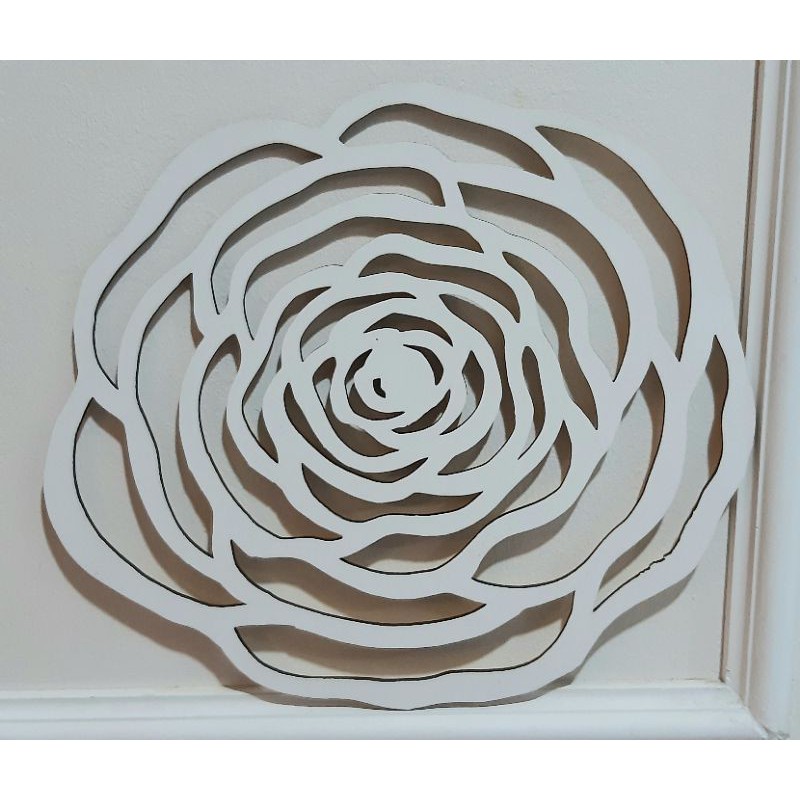 Kerawang kayu Bunga Rose hiasan pelamin/dinding/backdrop/photobooth/deco, Putih & Gold - warna dua side, lasercut, 40cm