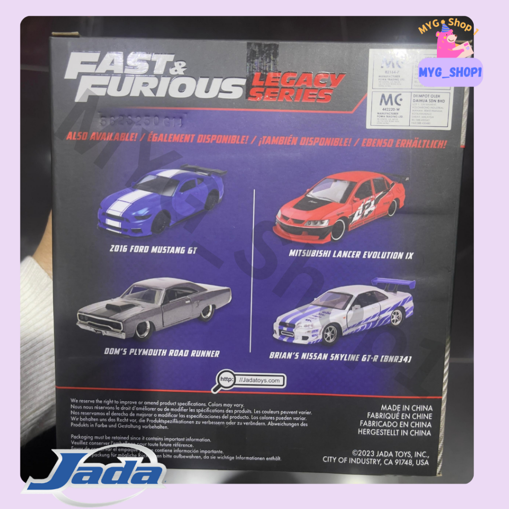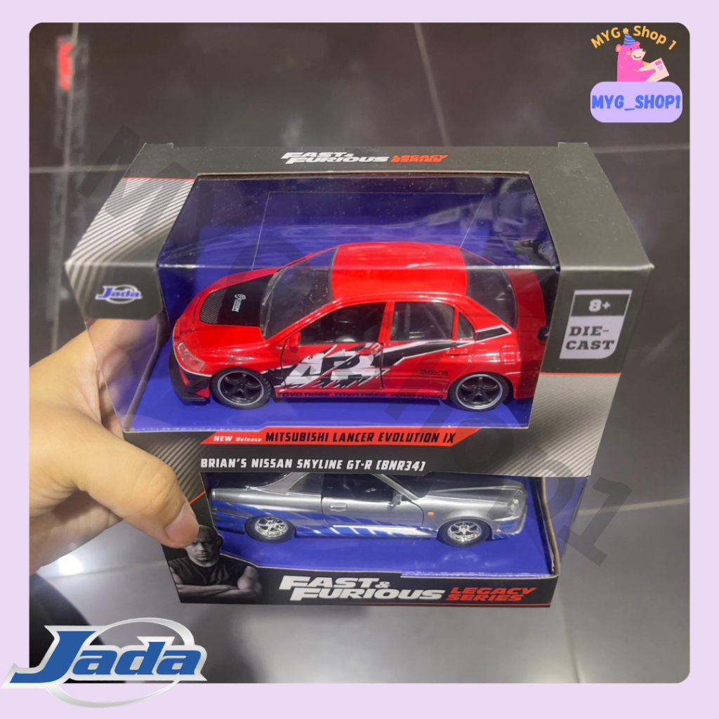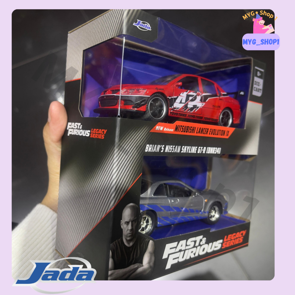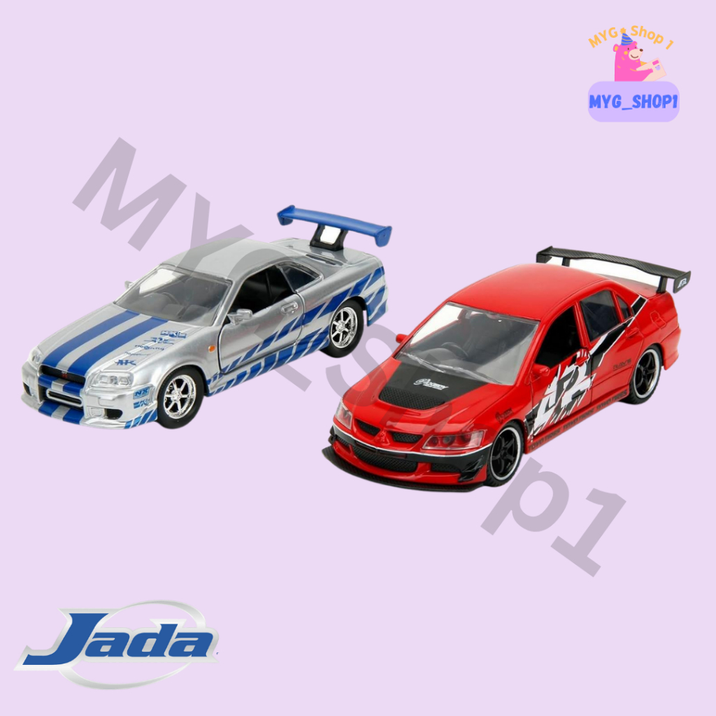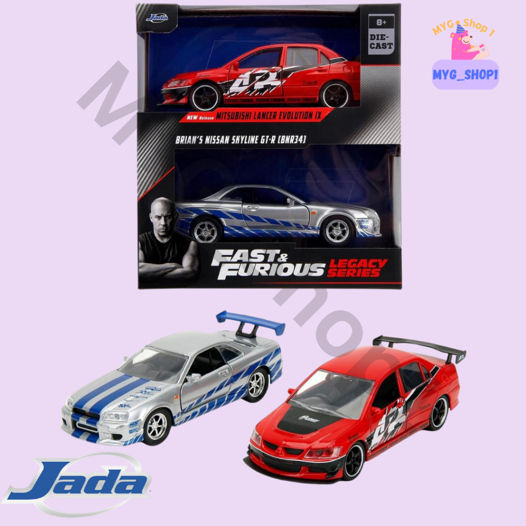 Kereta Mainan Jada Toys Fast & Furious Legacy Se Brian's Nissan Skyline GT-R (BNR34) & Mitsubishi Lancer Evo IX