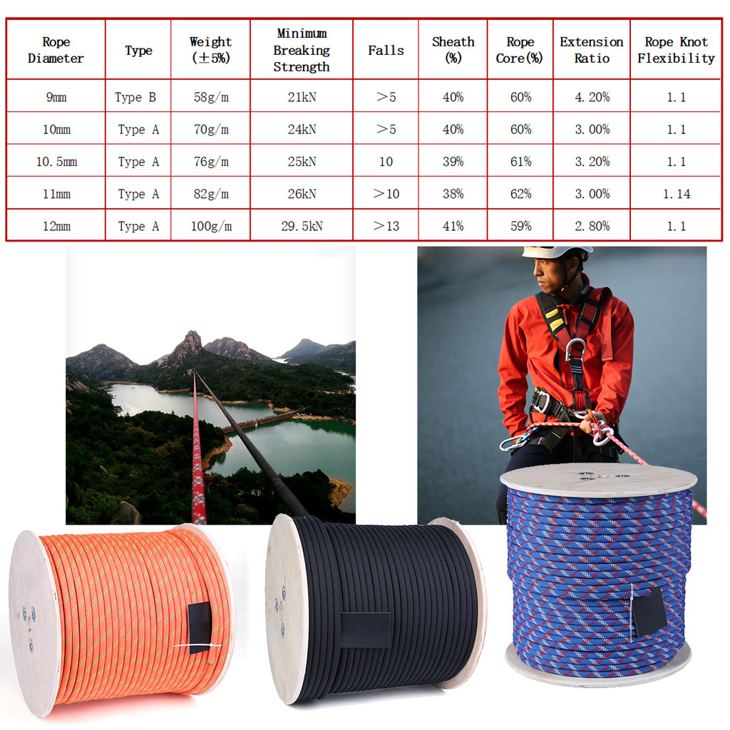 Kernmantle Climbing Static Rope 10.5mm 12mm 30m 50m 100m Rescue Rigging Flying Fox Caving Rappelling Ropes