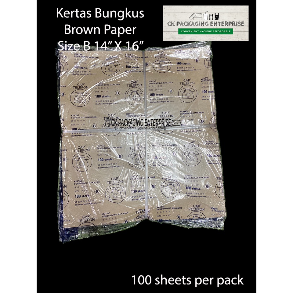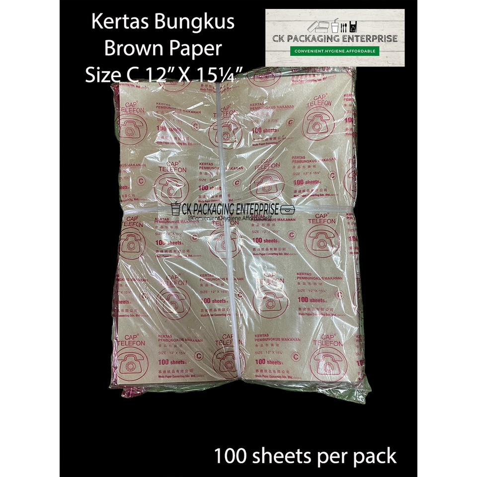 Kertas Bungkus, Brown Paper Size ABCD ,100sheets,kertas bungkus makanan ,kertas bungkus nasi, kertas bungkus burger