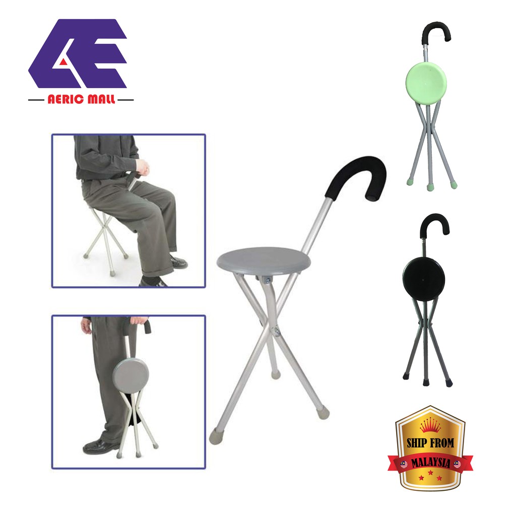 Kerusi Solat Sembahyang Tongkat Warna lipat 3 Kaki Alat Bantu Jalan OKU / Orang Tua