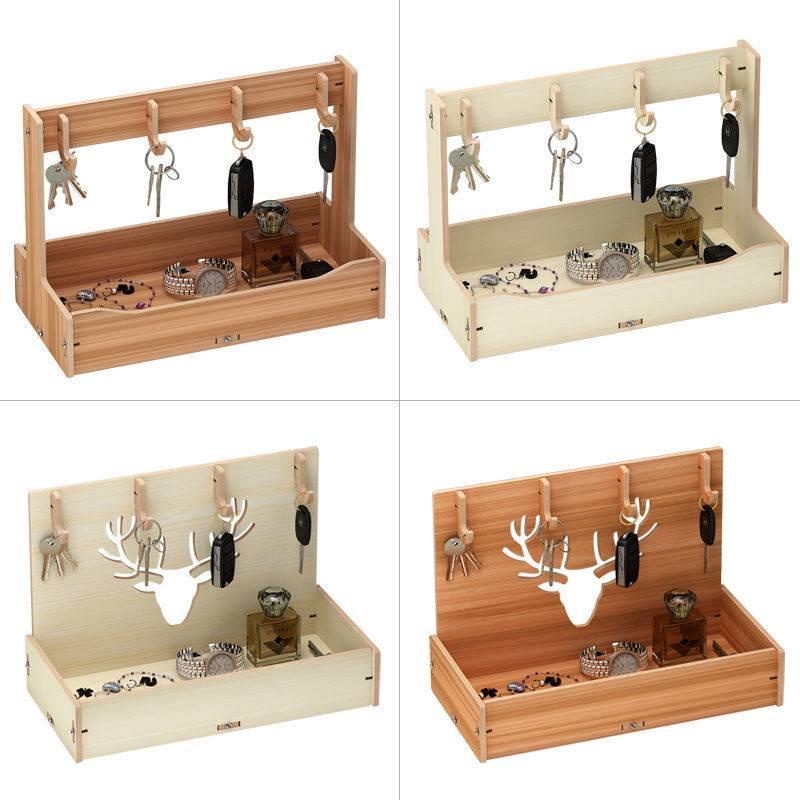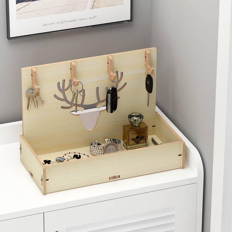 Key storage box decoration shelf solid wood storage box into door hanging key holder