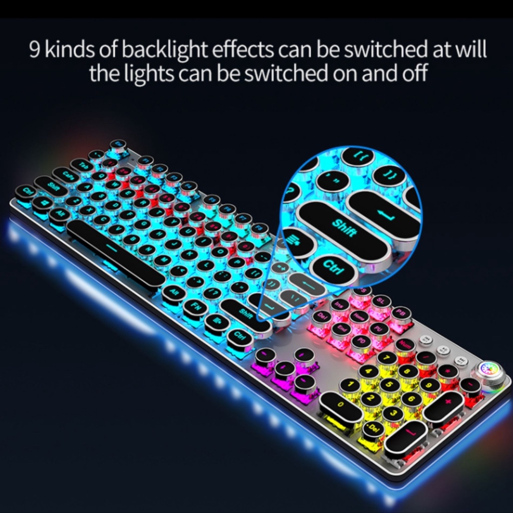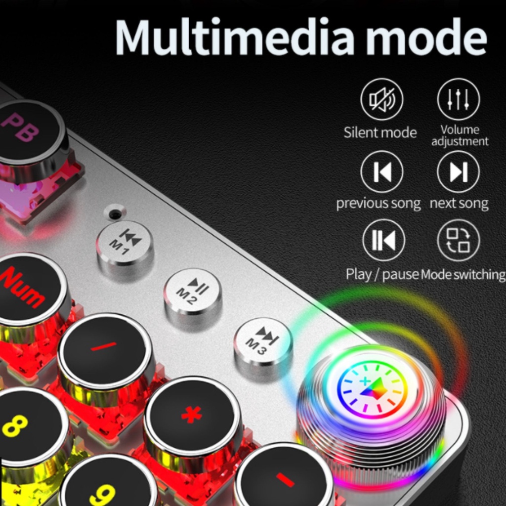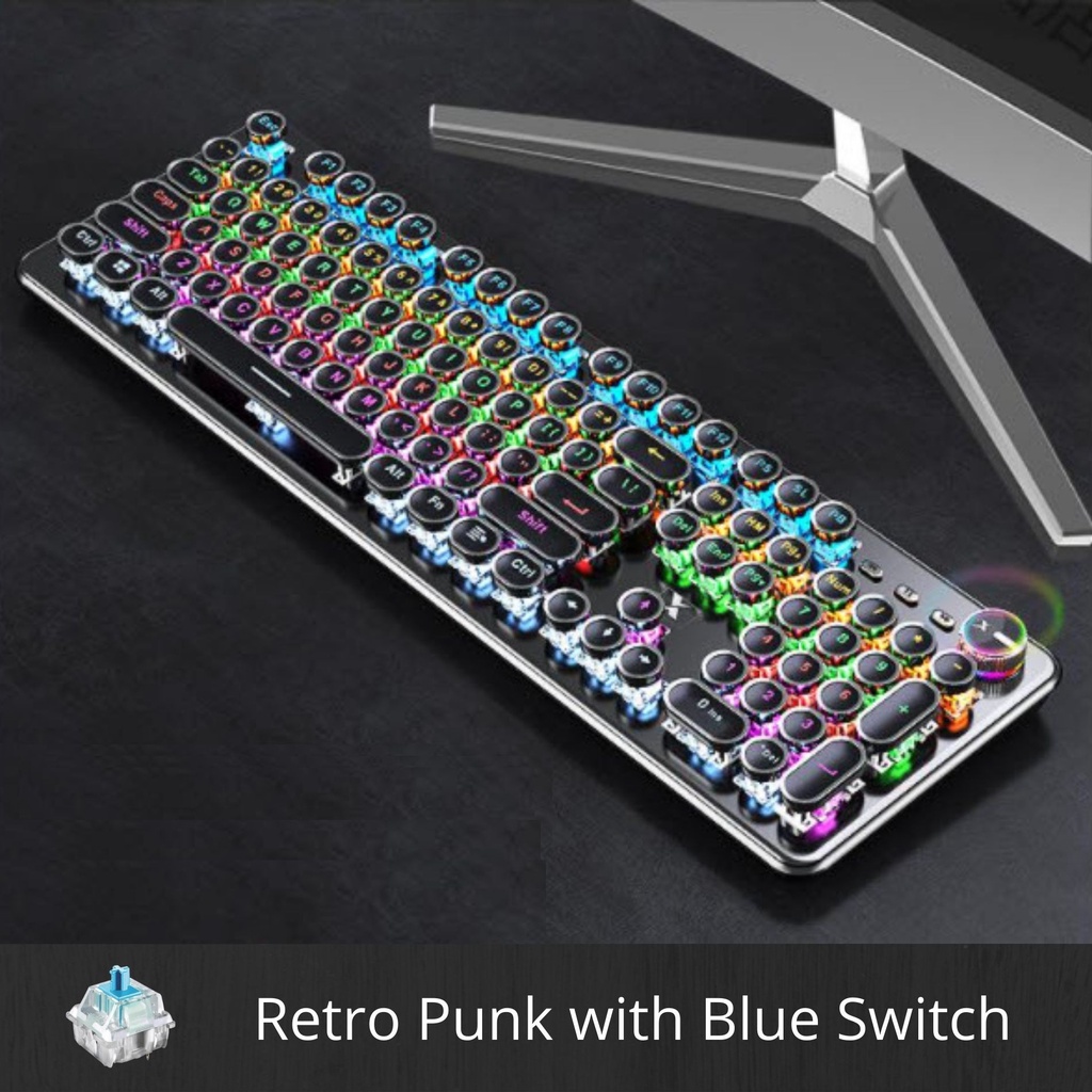 Keyboard Mechanical Gaming, 104 Keys Punk Retro RGB Backlight Multimedia Mode Keyboard Dimmer Knob