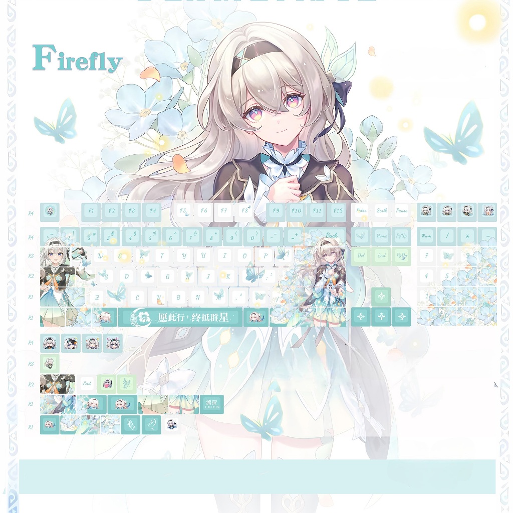 Keycap Honkai Impact 3 Elysia thick PBT ninja through led in dyesub 5 sides 135 keys anime layout keycaps Genshin Impact