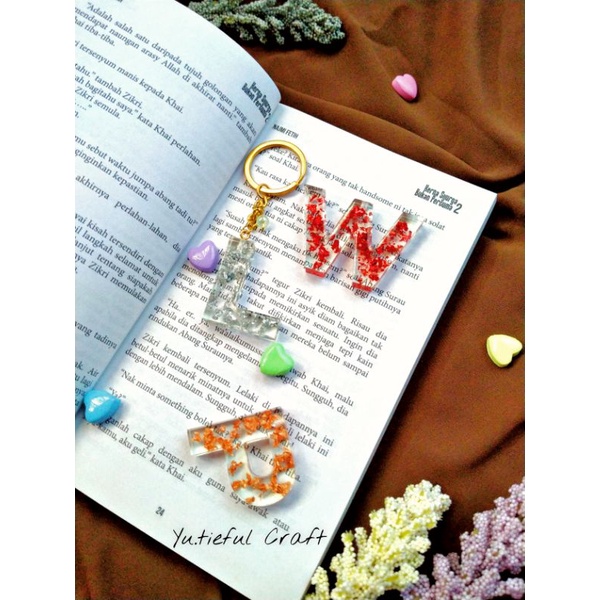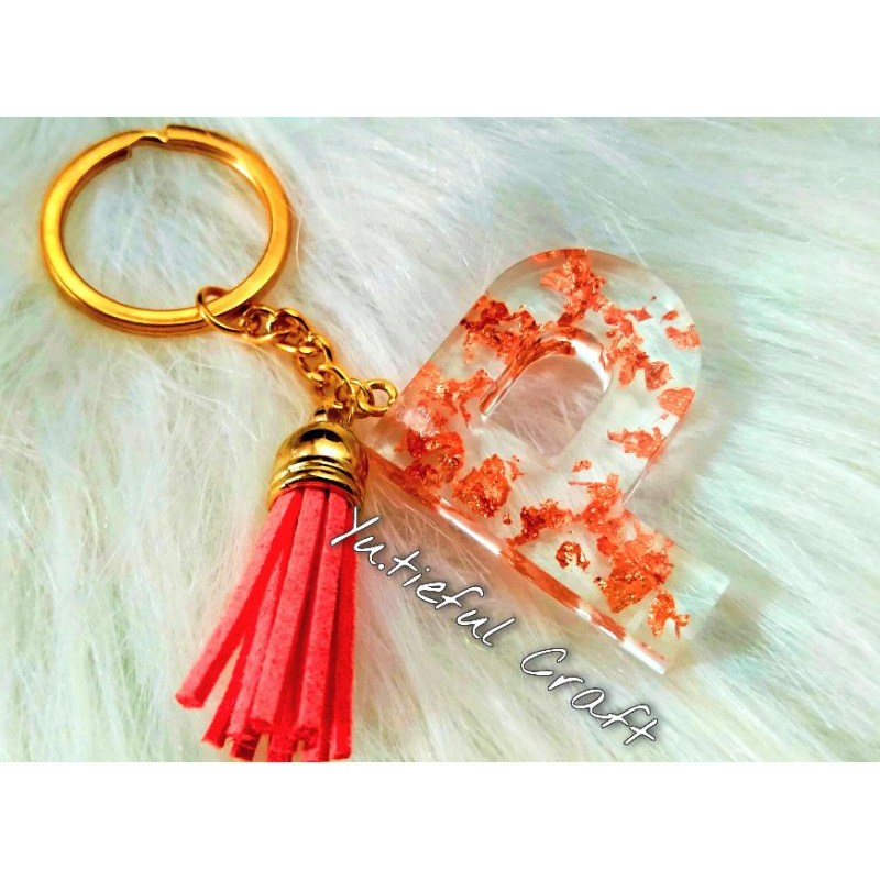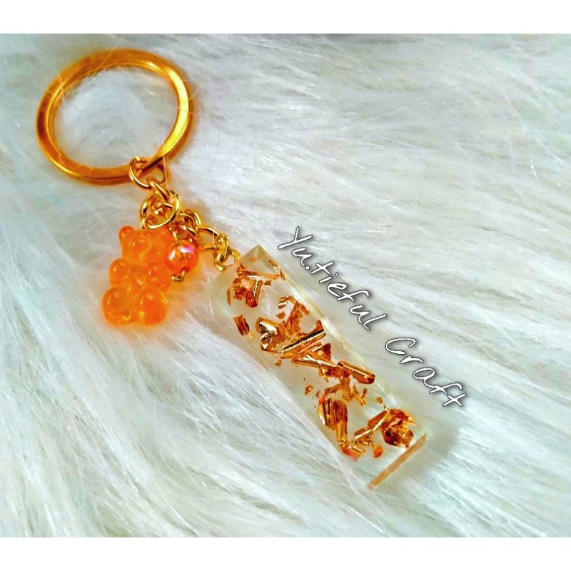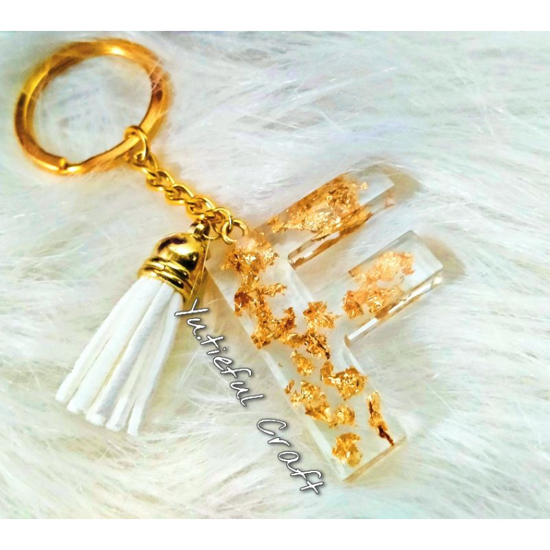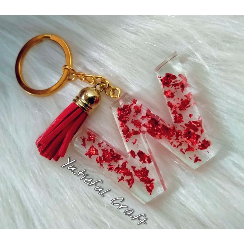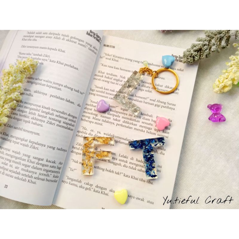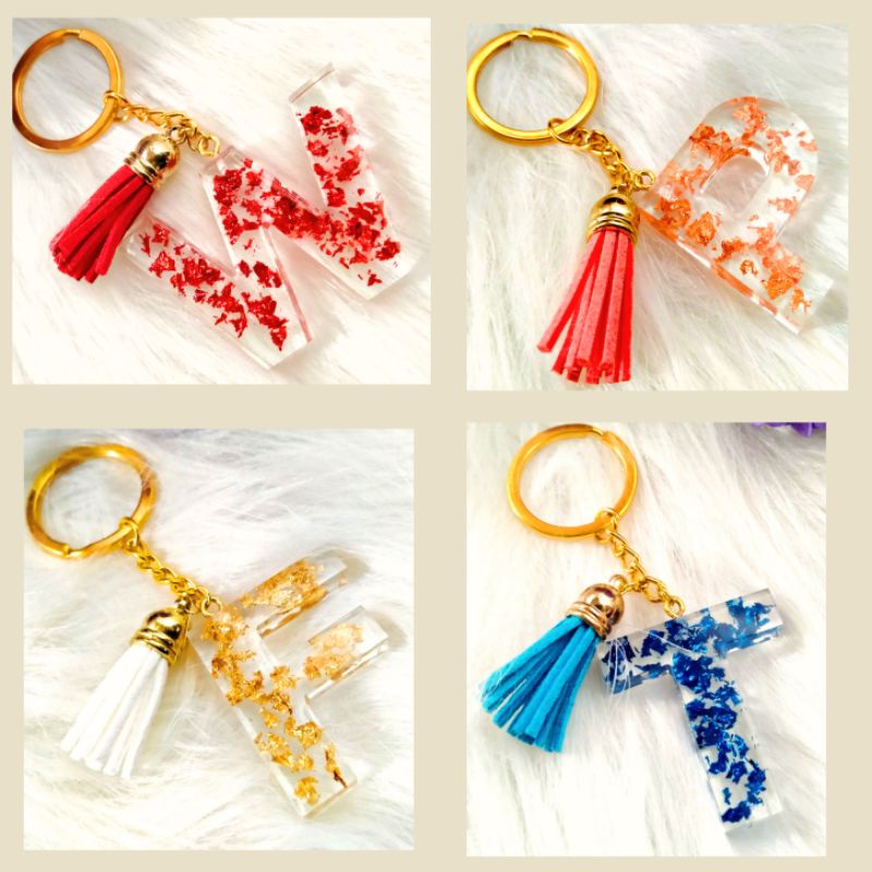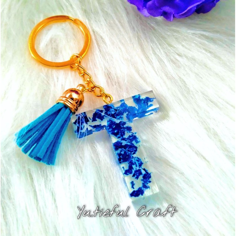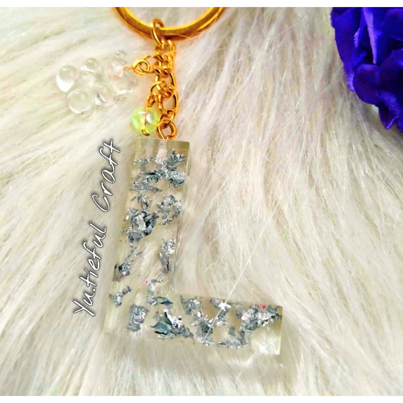 Keychain Alphabet Resin / keychain huruf ( Foil Flakes Series )