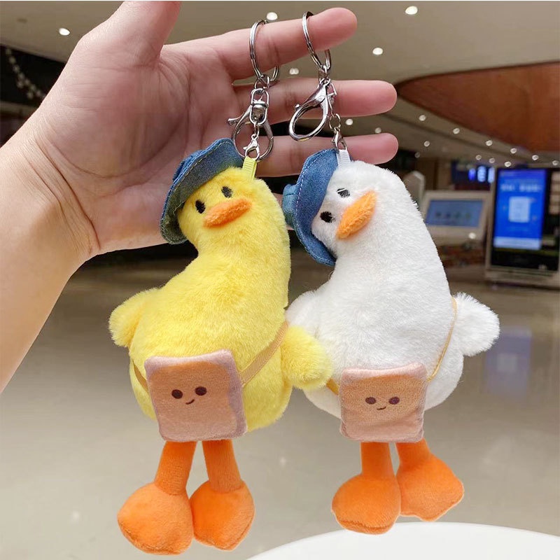 Keychain Funny duck crooked neck doll pendant yellow plush key ring accessories keychain