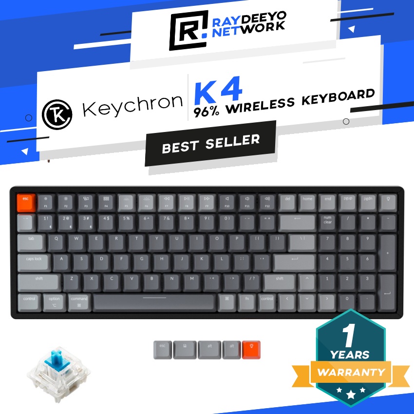 Keychron K4 V2 / K4 PRO RGB Wireless Mechanical Keyboard (Black/White) [96% Layout/Aluminum Body/Type-C]