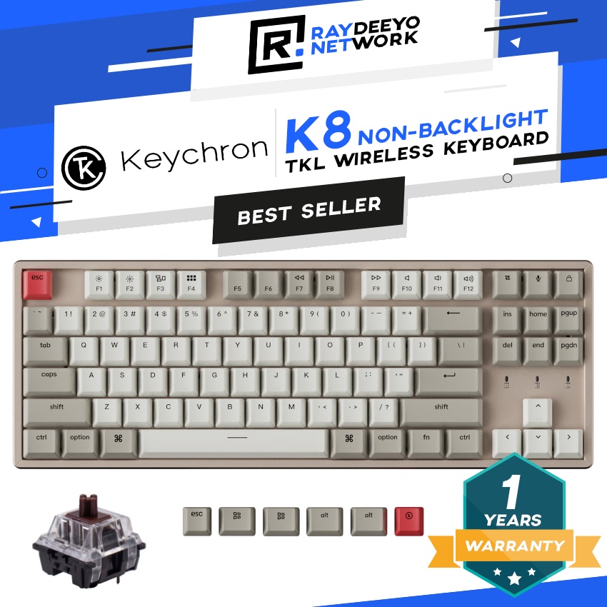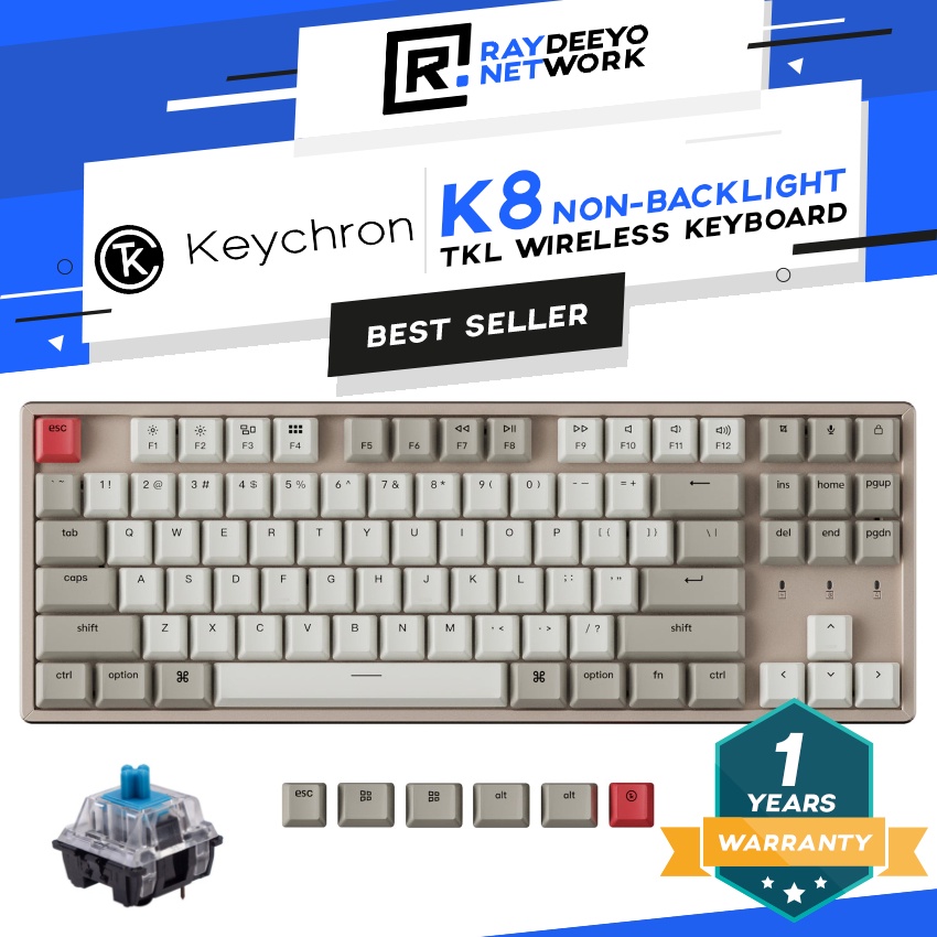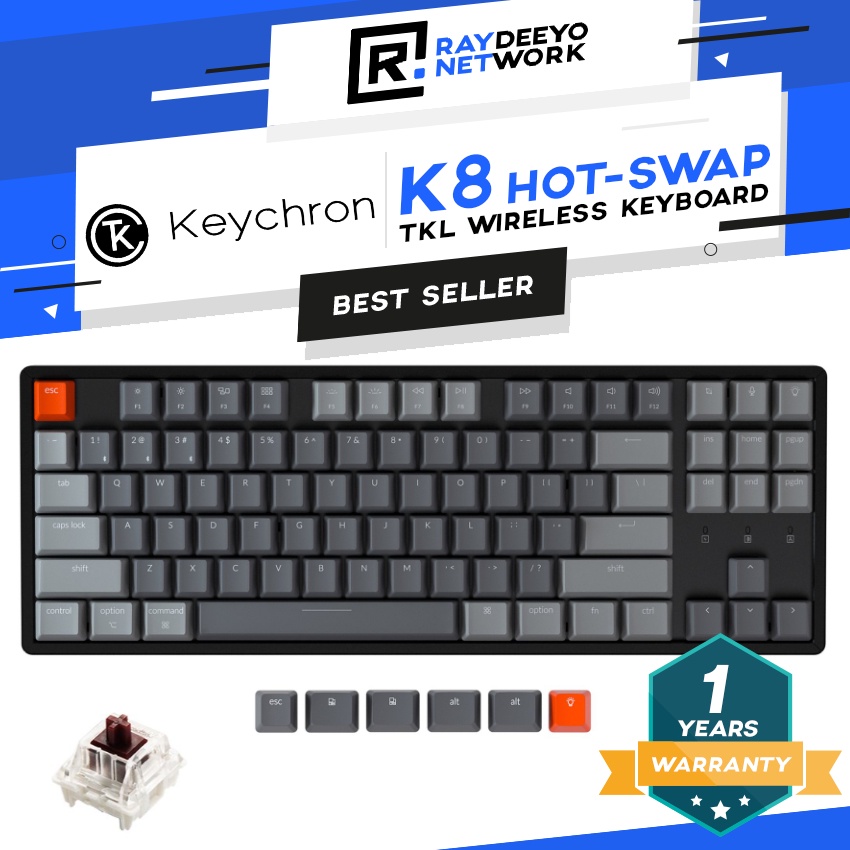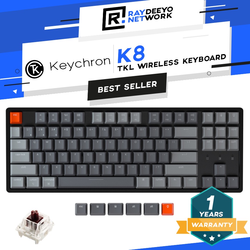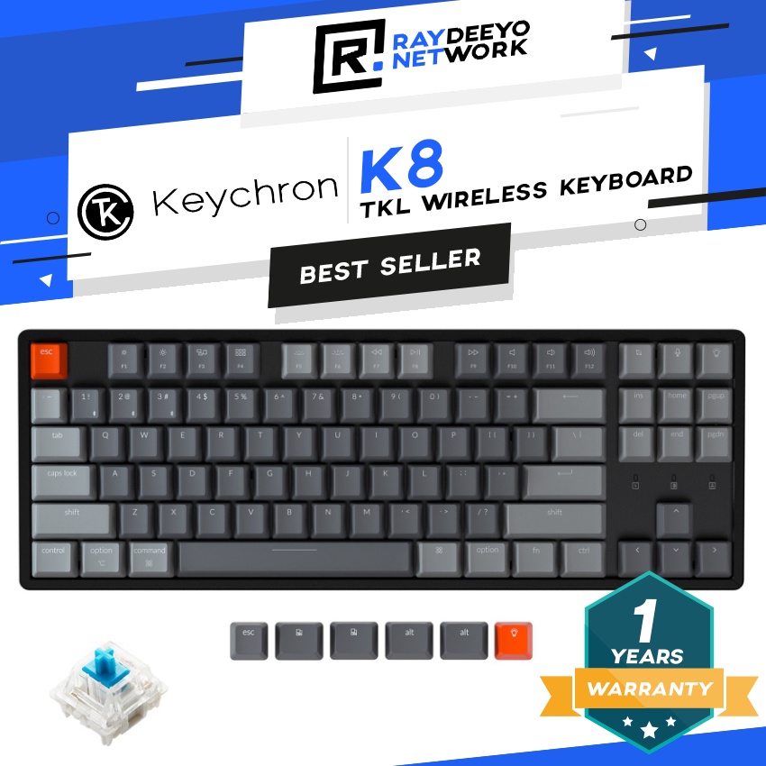 Keychron K8 RGB Wireless Mechanical Keyboard [TKL Layout/Type-C/Hot-swappable/Aluminium Body]