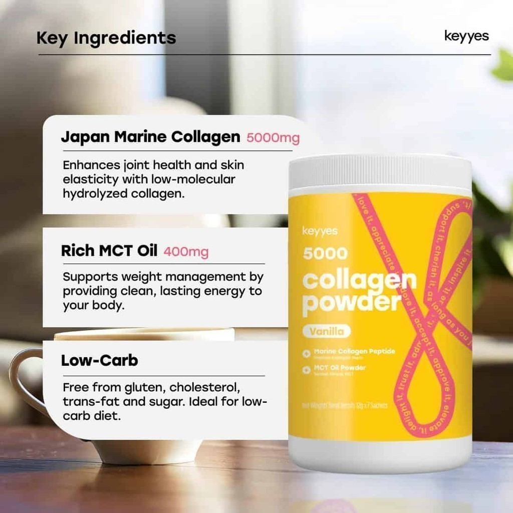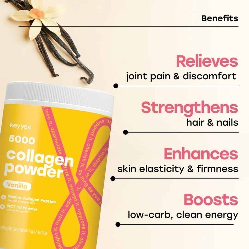 Keyyes 5000mg Collagen Vanilla + MCT Oil 400g | Collagen for Joint Health & Skin Elasticity