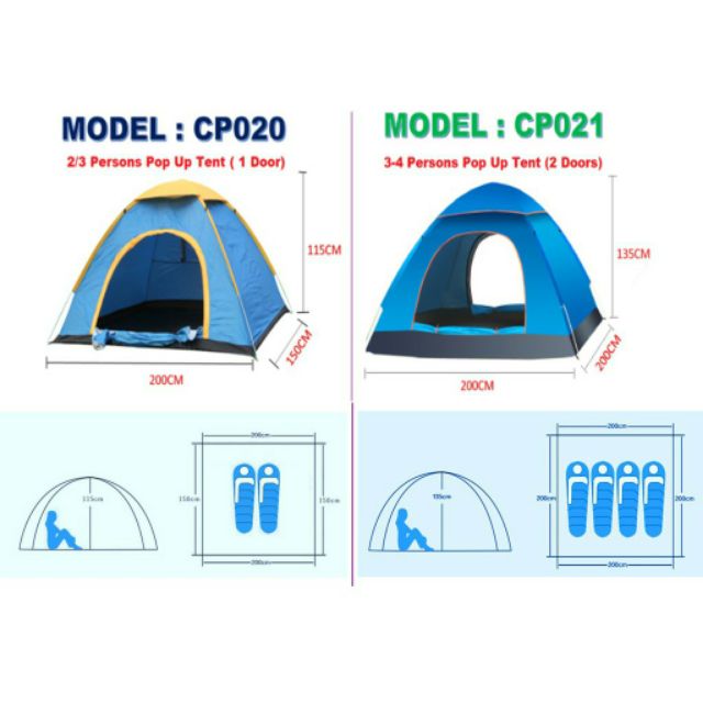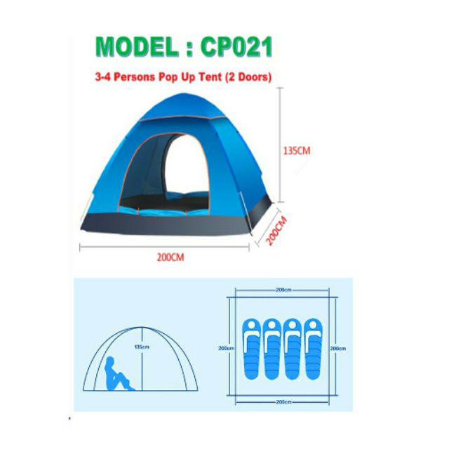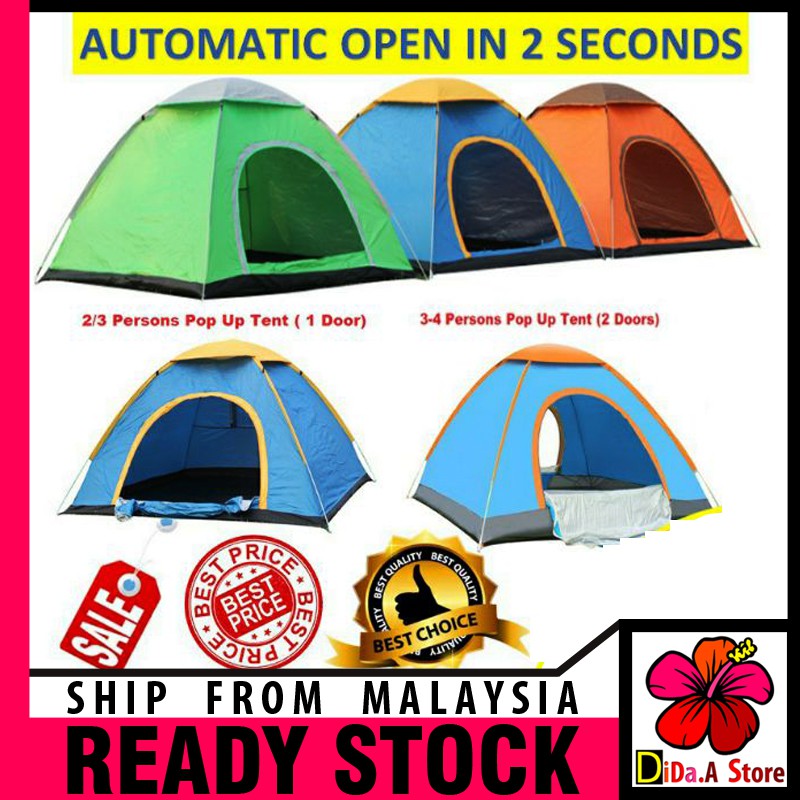 Khemah Hiking 2/4 orang / Outdoor Camping Tent Single Or Double Door Waterproof Khemah Kalis Air / Kemah Berkelah Pantai