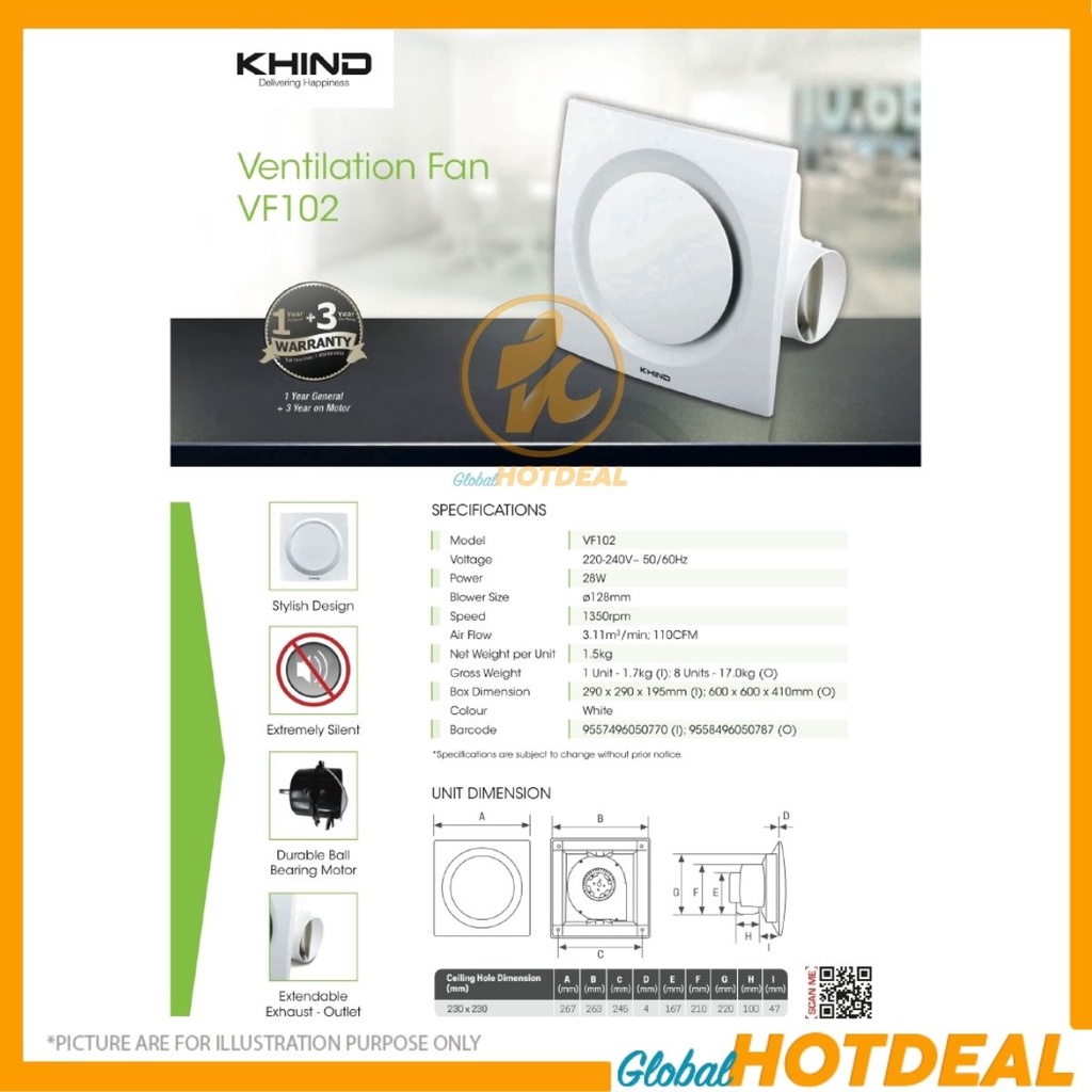 Khind 10" Ventilation Fan VF102 Exhaust Fan Ceiling Type White Colour Kipas Aliran Udara