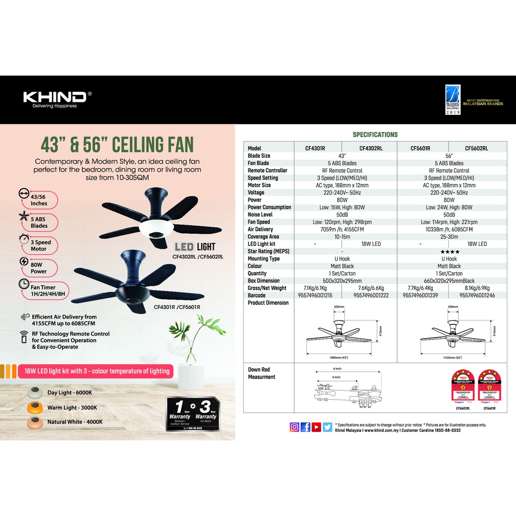 Khind 56" Ceiling Fan with Remote Control CF5601R